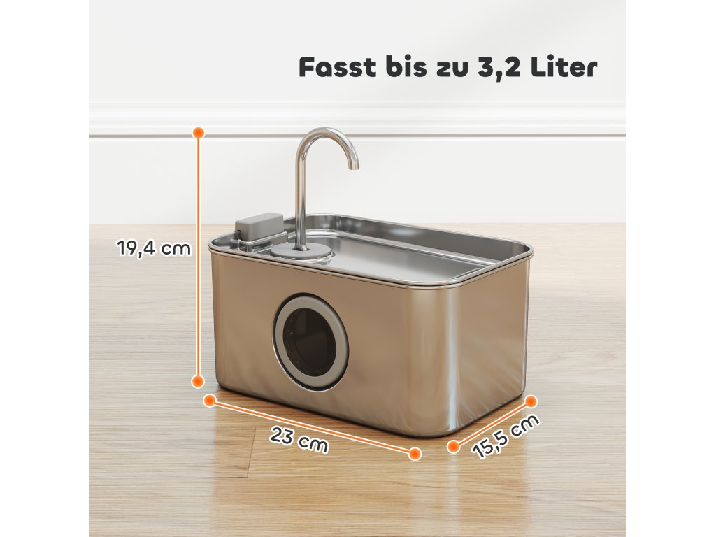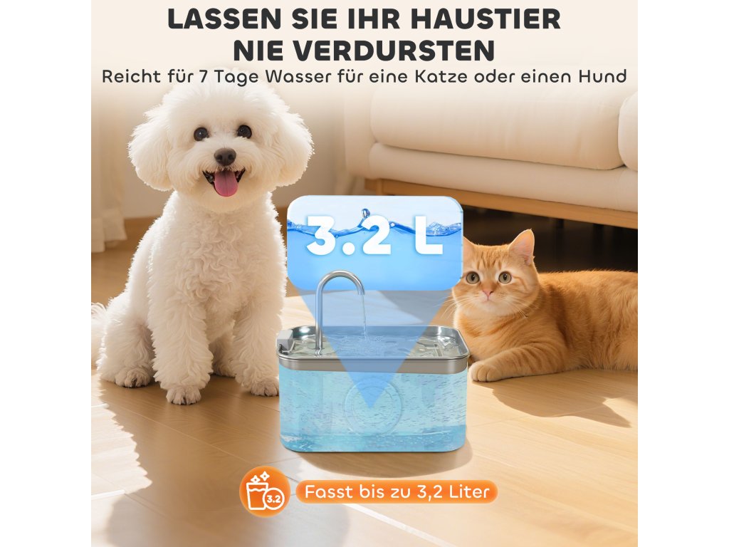 Velký objem 3,2 litru poskytuje vašemu mazlíčkovi vodu na 7 dní.