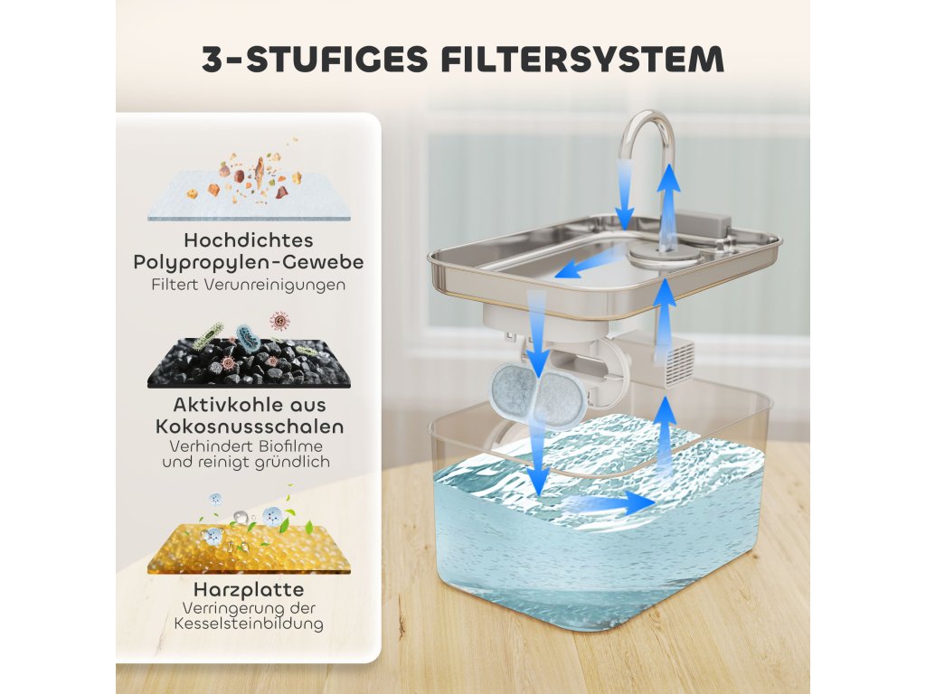 ✔ Dvojitý filtrační systém kočičí fontány udržuje vodu čistou a čerstvou.