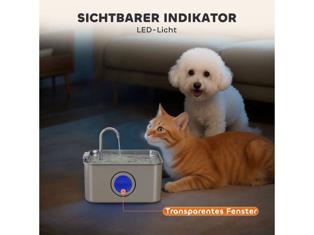 ✔ Viditelné okénko hladiny vody kočičí fontány s LED světlem pro snadné sledování.