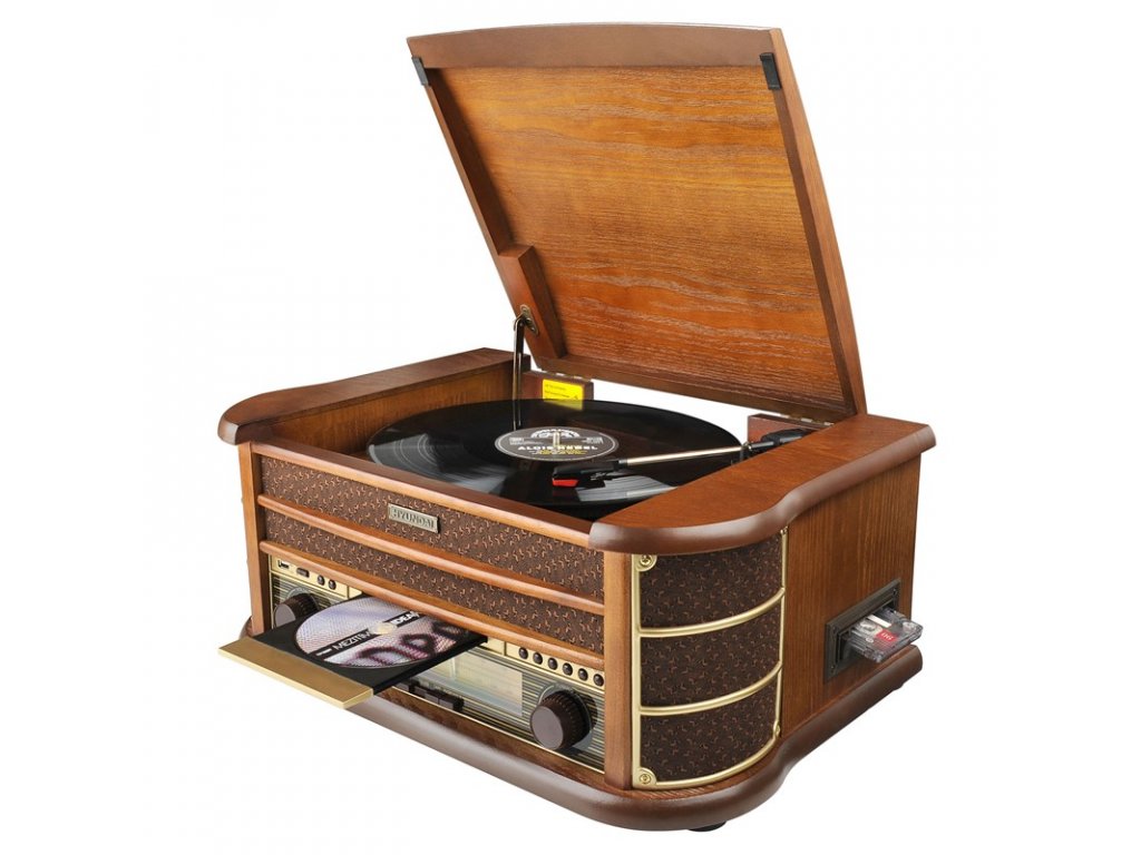 Gramorádio s CD a kazetovou mechanikou značky Hyundai Vás okouzlí svým perfektním provedením v barvě ořechu - v Retro stylu.
