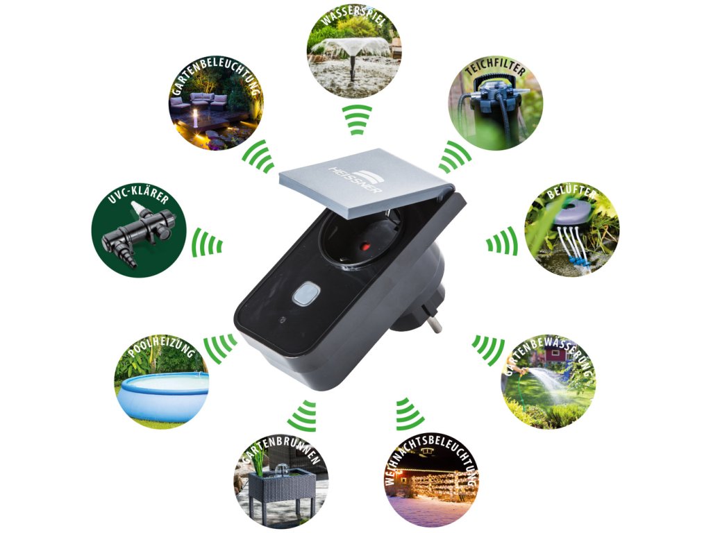 Celá zahrada v jedné aplikaci! Snadno ovládejte chytrou venkovní zásuvkou HEISSNER Z1-00 své zahradní osvětlení, techniku zahradního jezírka, bazénovou techniku nebo zahradní fontánu pomocí bezplatné APP prostřednictvím smartphonu nebo hlasového ovládání (Alexa).Připojte a ovládejte vše z pohodlí vašeho telefonu či tabletu. Díky ovládání nezávislé na tom kde so nacházíte, můžete simulovat přítomnost vdomě. Ukazatel spotřeby energie měsíčně, týdne, denně i vreálném čase,můžete sledovat, kolik energie spotřebováváte venku, a optimalizovat své návyky pro úsporu nákladů.Bezpečný celosvětový přístup k systému. Velmi jednoduchá instalace: zasuňte zástrčku adaptéru mezi zařízení a zásuvku. Venkovní zásuvka odolná proti stříkající vodě (provedení s testem IP44) Lze použít při okolní teplotě od -20 stupňů do +45 stupňů Celsia Maximální výkon připojení 3680 wattů / 16A šifrování WPA a WPA2 SMART PLUG lze zapnout a vypnout i stisknutím tlačítka a nabízí i chytré funkce. Zapnete a vypnete zahradní technikuTlačítkem Aplikací Pomocí hlasu Automaticky (časovač, dle počasí,…)Chytré funkceOvládání přes Aplikaci Alarm pomocí push zpráv při výpadku připojených zařízeních Ukazatel spotřeby energie měsíčně, týdne, denně i vreálném čase Možnost nastavit libovolný počet časovačů Ukazatel miliampérů, Voltů, Watty, kW/h, denní hodnoty, měsíční Ukáže vreálném čase které zařízení je zapnuté a které neChytré použití ovládání…Zahradní a vánoční osvětlení Zahradní jezírko ( jezírková čerpadla, filtrace, vzduchování, UV lampy, osvětlení) Bazény (vytápění, filtrace, čištění) Zahradní fontány, vzduchování jezírek, zavlažovací čerpadlaChytrá integraceJednoduché propojení již do existujícího systému W-LAN Vysoká kompatibilita a možnosti připojení, např. Alexa, Google Homme, Siri, IFTTT. Další chytrá zahradní zařízení se mohou přidat do aplikace, např chytrá zahradní kamera, zahradní osvětlení a regulovatelná jezírková čerpadla.Parametryzáruka 2 rokyIP44 ochrana proti stříkající voděŠifrování WPA a WPA2MAX výkon 3680 wattů / 16AProvozní teplota -20ºC do +45ºCd x š x v 11,5 x 6,0 x 8,0Doplňkové parametry