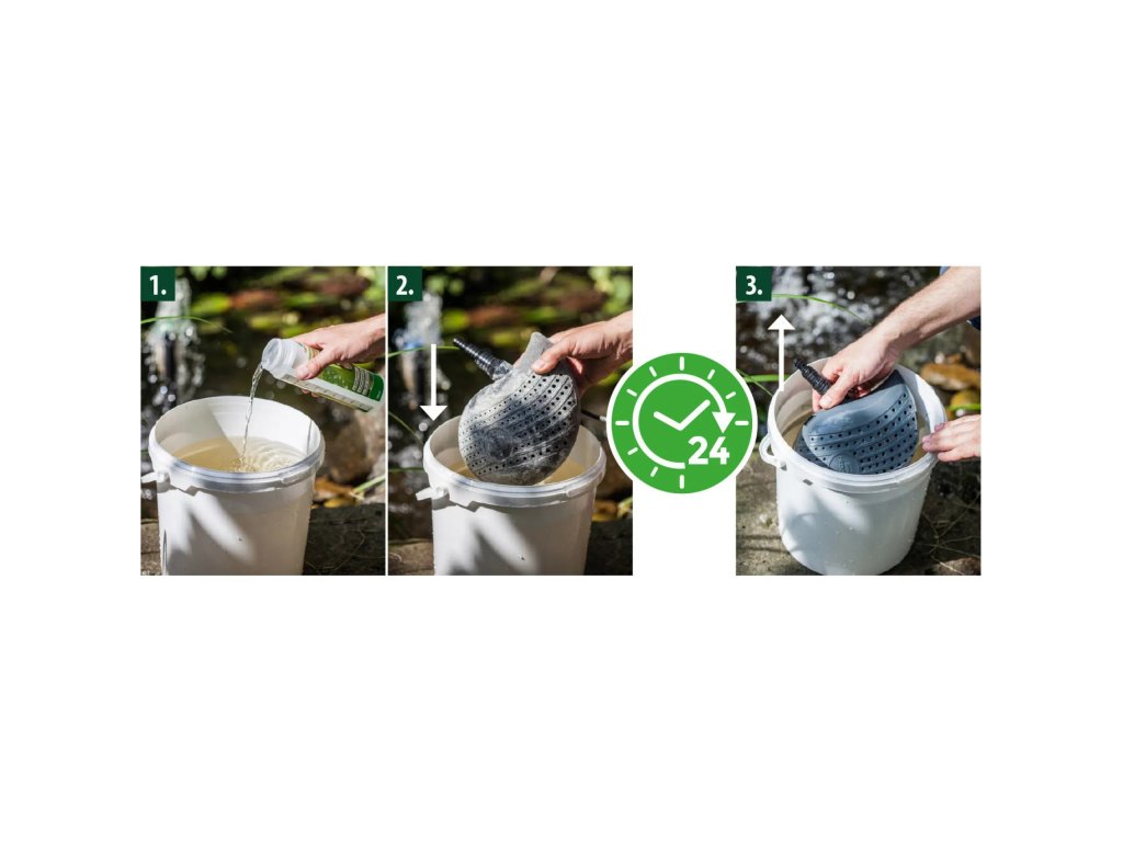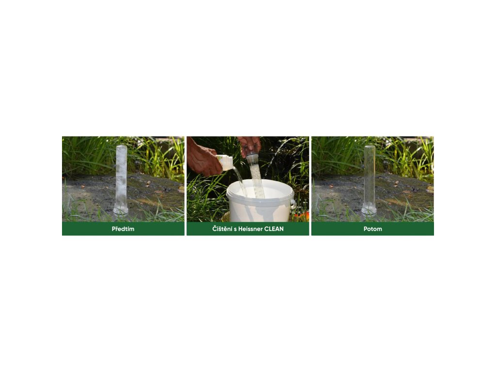 Udržujte svá čerpadla, filtrace a UV lampy v perfektním stavu s univerzálním čisticím prostředkem Heissner Clean Speciální čistič 500 ml. Tento spolehlivý čistič odstraňuje vodní kámen, minerální usazeniny a další nečistoty během 24 hodin, čímž prodlužuje životnost zařízení a zajišťuje optimální výkon a průhlednou vodu. Použití je jednoduché: 500 ml koncentrátu smíchejte s 9,5 l vody, ponořte zařízení na 24 hodin a poté důkladně opláchněte čistou vodou. V případě odolných nečistot doporučujeme setření houbičkou. Čisticí roztok je biologicky rozložitelný a bezpečný, ale nesmí být vypouštěn do biotopů; doporučuje se likvidace přes domácí odpadní systém. Heissner Cleanje ideální pro čerpadla, filtrační jednotky, UV lampy a fontány v jezírkách, akváriích nebo bazénech. Pravidelná údržba zvyšuje efektivitu UVC lamp, prodlužuje životnost čerpadel a udržuje zařízení ve špičkovém stavu. Technické parametry:Objem: 500 ml Použití:univerzální - čerpadla, filtrační jednotky, UV lampy a fontány Dávkování: 500 ml koncentrátu + 9,5 l vody Bezpečnostní pokyny (P-věty): P280, P305+P351+P338, P333+P313 , P501. Výstražné upozornění (H-věty): H315, H318. Před použitím, si přečtěte etiketu a informace o produktu.Doplňkové parametry