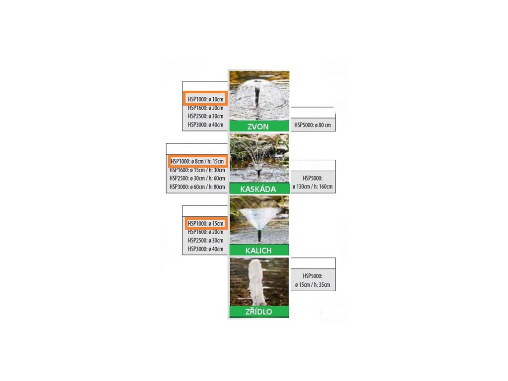 Splnili jste si svůj sen o vlastním zahradním jezírku a nyní chcete své jezírko udržovat zdravé? Pak je jezírkové čerpadlo nutností. Jezírkové čerpadlo je něco jako srdce zahradního jezírka: cirkuluje jezírkovou vodu a zásobuje tak jezírko dostatečným množstvím kyslíku. Tím se nejen zlepší kvalita vody ve vašem jezírku, ale také se z něj stane stabilní ekosystém. V závislosti na velikosti a využití jezírka si můžete vybrat z účinných filtračních, potůčkových čerpadel, efektových čerpadel nebo energeticky úsporných solárních čerpadel HEISSNER. Jezírkové efektové čerpadlo HEISSNER HSP1600-00 Čerpadlo má velice nízkou spotřebu elektrické energie a vysoký stupeň účinnosti. Při vývoji byl kladen důraz na tichý chod, funkčnost a snadné čištění. Čerpadla jsou určená pro zahradní jezírka, okrasné nádrže, rybníčky s rybami, fontány, dekorační fontánám a k prokysličování vody. Při stálém provozu je znát nízká spotřeba. Snadná údržba díky jednoduchému rozebrání, bez použití nářadí. Je vybavené teleskopickou trubkou (20 až 48 cm) s kohoutem pro regulaci výšky efektu a přípojkou na vodní chrlič, možnost regulace sklonu teleskopické trubky. Obsahuje 3 efektové nástavce pro vodní hry. Horní kryt čerpadla s jemnými filtračními drážkami, nepropustí větší nečistoty, které by mohli ucpávat efektovou vodní trysku a zanášet rotor. Vhodné pro: vodní efekty, jezírkové nádržky, vodní chrliče, zřídla · výborný poměr výkonu k ceně· plně vybavené s vodními efekty, regulovatelnou teleskopickou trubkou (20 - 48 cm) a přípojkou na vodní chrlič· mrazuvzdorné do -20° C Zejména v horkých letních dnech, kdy se voda značně ohřívá, je využití čerpadla s vodními efekty ideální, dodáte další potřebný kyslík jezírku a rybám. Parametry:Výkon 1 500 l/hPříkon 20 WDopravní výška cca 1,80 mVýška výstřiku do 30 cmd × š × v 17,5 × 16 × 11 cmHadicová přípojka 12,70 + 19,05 + 25,40 mmDélka kabelu 10 mTeleskopická trubka 20 - 48 cm3 vodní efekty vodní zvon, kalich, kaskádaZáruka 5 letDoplňkové parametry