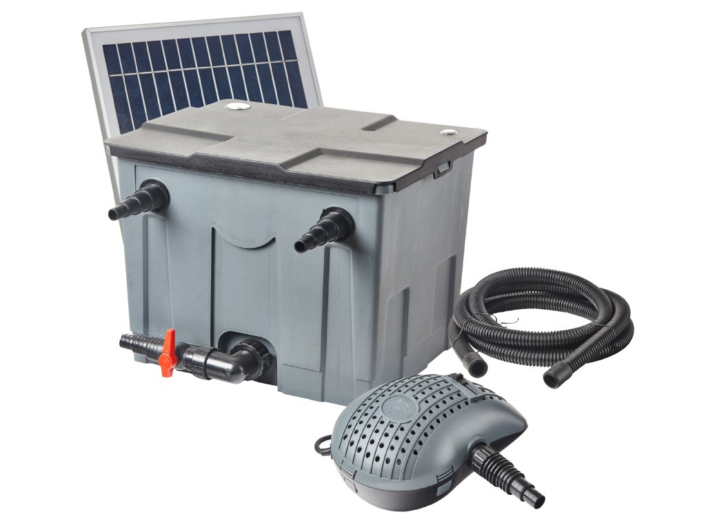 Solární hybridní sada průtokové filtraceHeissner SF8000-00 představuje moderní a energeticky úsporné řešení pro čistou a zdravou vodu v zahradních jezírkách. Systém využívá kombinovaný provoz – přes den běží na solární energii, zatímco v noci automaticky přepíná na napájení ze sítě (AC 230 V). Díky tomu zajišťuje nepřetržitou cirkulaci a filtraci bez ohledu na sluneční svit. Srdcem sestavy je 18V čerpadlo s průtokem až 3 500 l/h, které si poradí i s náročnější filtrací. Maximální dopravní výška 2,1 m umožňuje jeho využití nejen v jezírkách, ale také v potůčcích nebo menších vodních prvcích. Čerpadlo je vybaveno 5m přívodním kabelem, což poskytuje flexibilitu při instalaci. Součástí systému jsou krystalické solární panely 18 V / 20 W, které efektivně využívají sluneční energii a zajišťují stabilní provoz během dne. Díky nízké energetické náročnosti a bezúdržbové technologii je celý set mimořádně spolehlivý a ekonomicky výhodný. Průtokový filtr je navržen pro jezírka do 8 000 l bez ryb nebo 4 000 l s rybami. Díky robustní konstrukci umožňuje průchod nečistot do velikosti až 10 mm, což výrazně snižuje frekvenci čištění. Heissner SF8000-00 kombinuje ekologický solární provoz, automatické noční napájení, spolehlivou filtraci a snadnou instalaci. Je ideální volbou pro všechny majitele jezírek, kteří chtějí čistou, stabilní a biologicky vyváženou vodu s minimálními provozními náklady. Klíčové vlastnosti:Hybridní provoz: solární energie ve dne + automatické přepnutí na 230 V v noci. Úsporné a výkonné čerpadlo 3500 l/h s nízkou spotřebou 15 W. Průtoková filtrace včetně 4 filtračních hub, ideální pro přírodní jezírka do 8000 l (bez ryb)/ 4000 l (s rybami). Vysoce efektivní 18 V / 20 W solární panely. Kompletní sada připravená k instalaci včetně univerzálních přípojek.Technické parametry:Výkon čerpadla: 3500 l/h Dopravní výška: 2,10 m Solární panel: 18 V / 20 W (krystalický) Délka kabelu: 5 m (H05RN-F) Rozměryfiltrace(d × š × v): 52 x 40 x 40 cm Rozměry solárního panelu:(d × š): 38 x 35 cm Rozměry čerpadla(d × š × v): 33 x 24 x 15 cm Obsah balení: čerpadlo SPB3000-00 + adaptér, 2x solární panel 18 V / 20 W, průtoková filtrace včetně 4 filtračních hub a univerzální hadicové přípojky 19/25/32/38 mm, hadice (5m / 25 mm).Doplňkové parametry