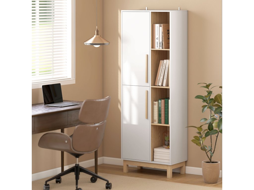 Máte doma nepořádek? Nepořádek v místnosti ztěžuje skutečný odpočinek. Knihovna HOMCOM je dokonalým řešením díky svému modernímu dvoubarevnému designu, který zútulní váš interiér. Kombinuje otevřené přihrádky a skryté úložné prostory a vytváří tak estetický a nepřeplněný obývací prostor, na který budete pyšní.