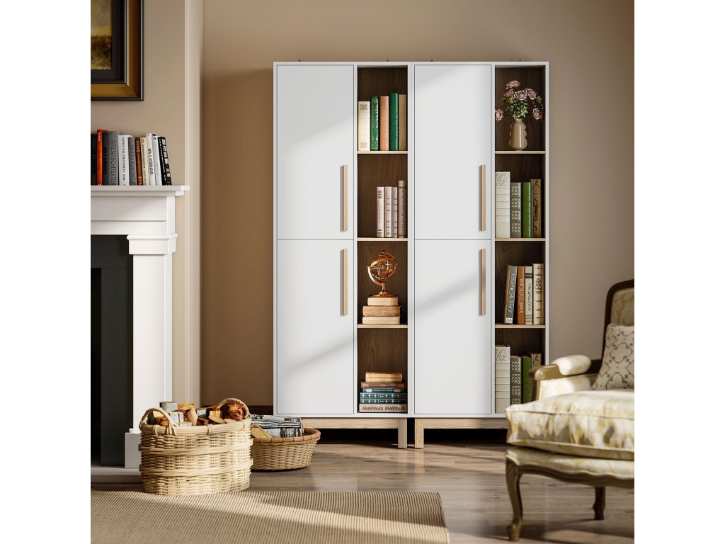 - ✔ Kombinuje čtyři otevřené police a dvě skříňky pro vystavení předmětů nebo skrytí nepořádku