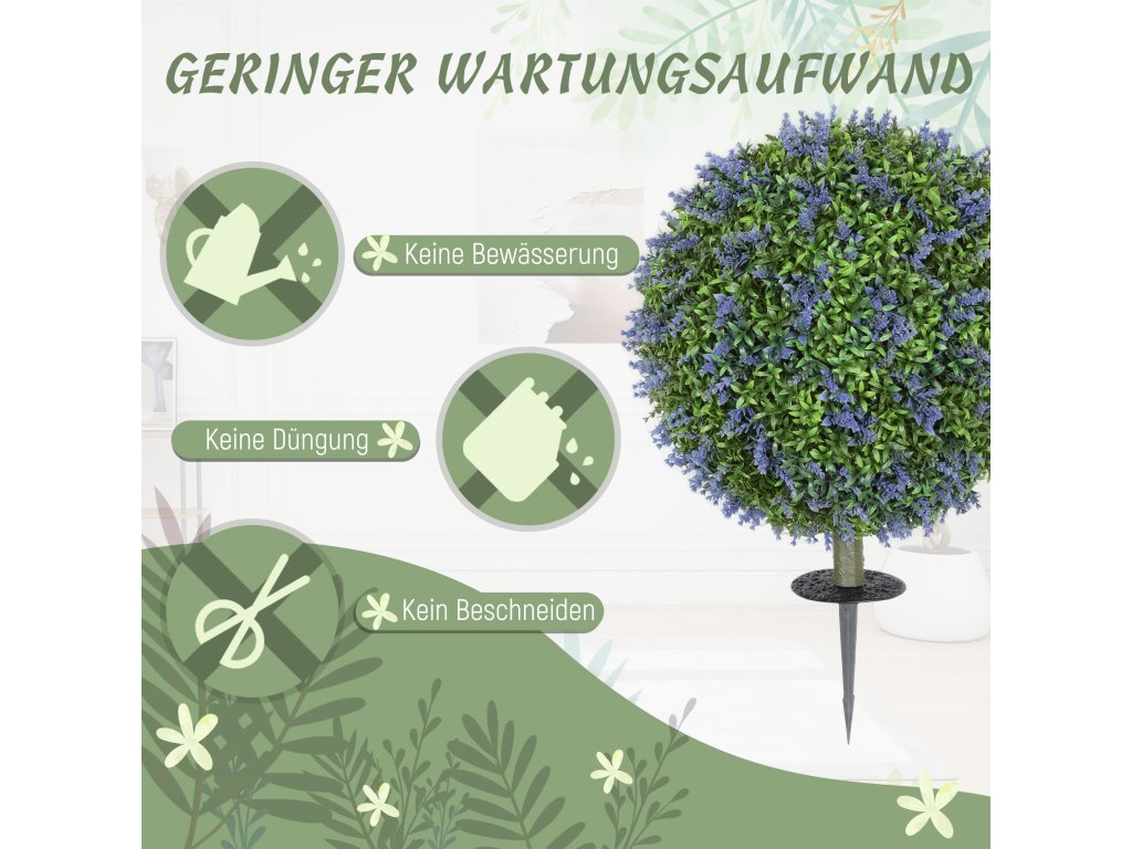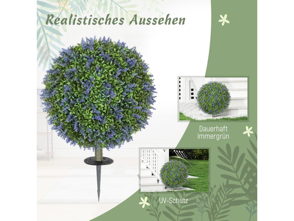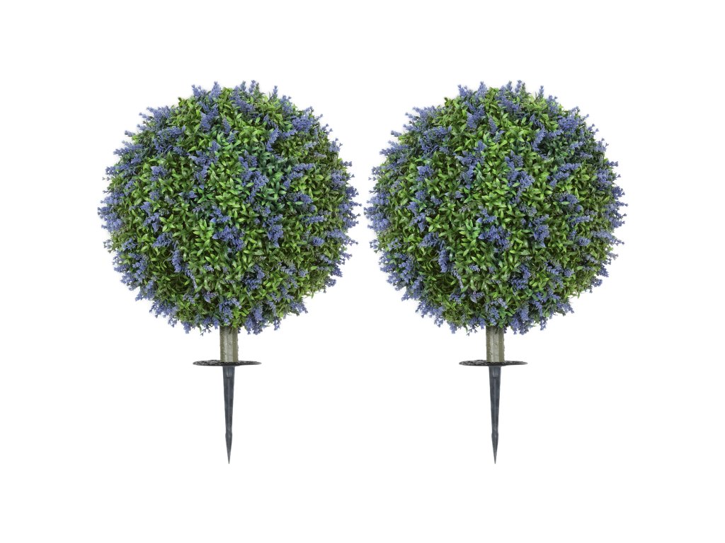 HOMCOM 2dílná sada umělých stromků, umělé levandulové stromky, zemní trny, odolné proti UV záření