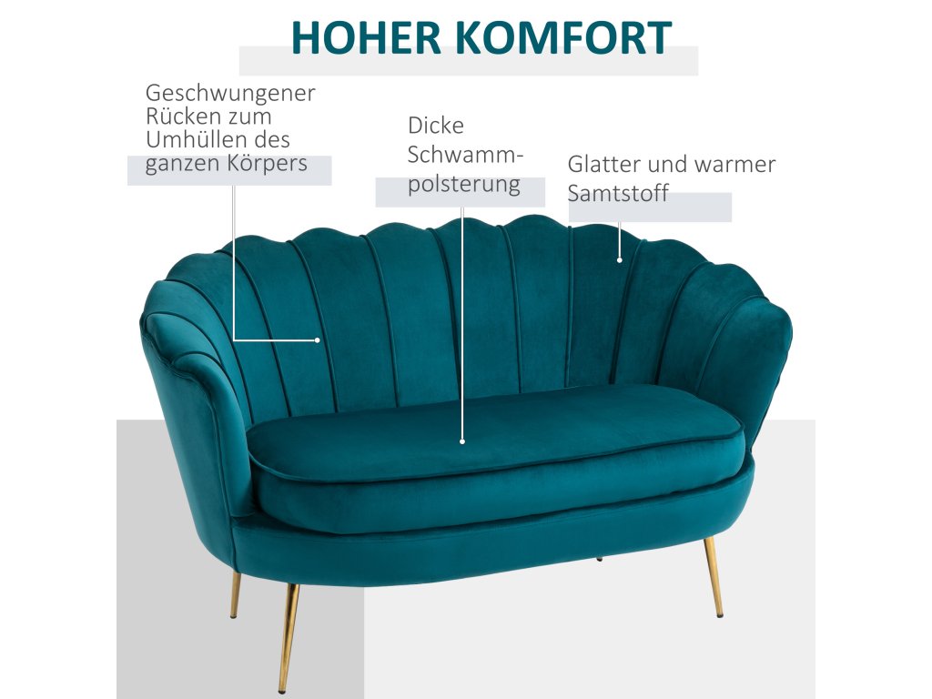 - Útulné sezení: Tato dvoumístná pohovka nabízí vynikající zážitek ze sezení díky silnému sedáku. Opěradlo dokonale obklopí vaše tělo. Sametová tkanina je měkká a hřejivá a navíc se snadno čistí a udržuje