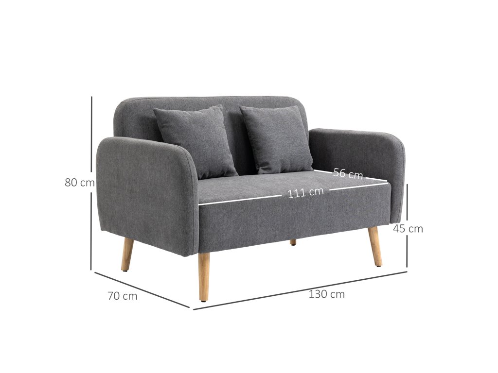HOMCOM 2místná pohovka, gauč se 2 polštáři, čalouněná pohovka pro dva, čalouněná pohovka se sametovým potahem, područky, křeslo do obývacího pokoje, ložnice, 130 x 70 x 80 cm, šedá barva