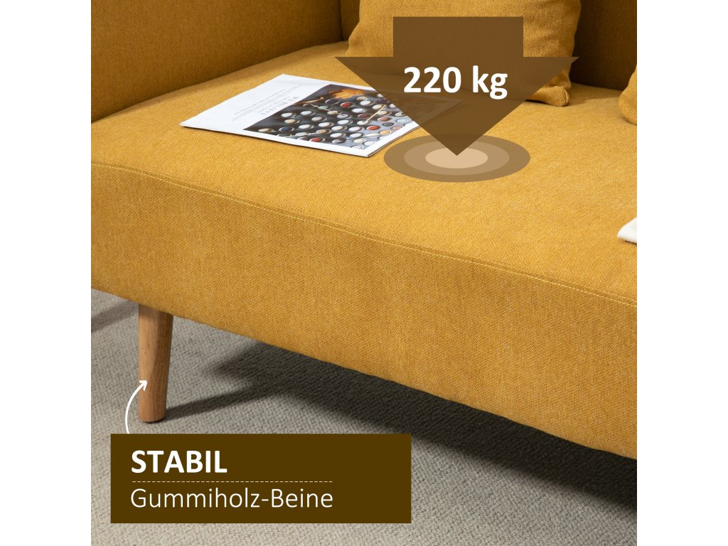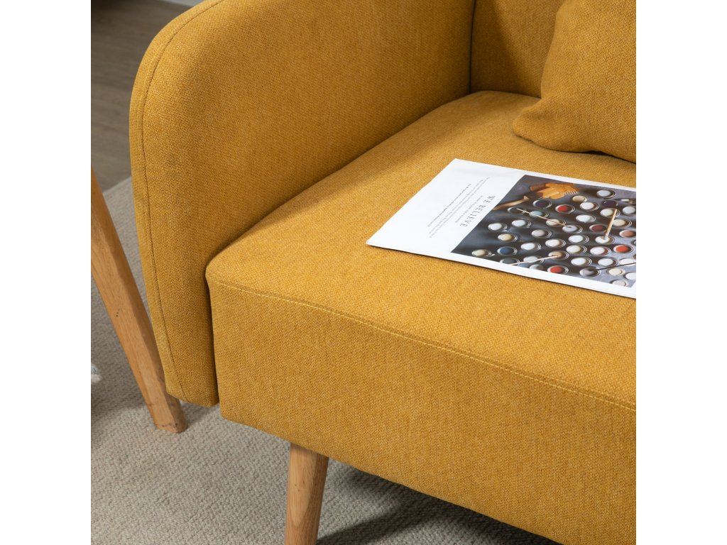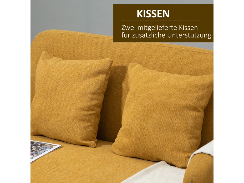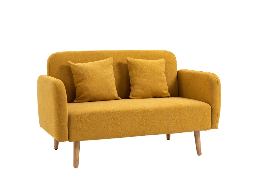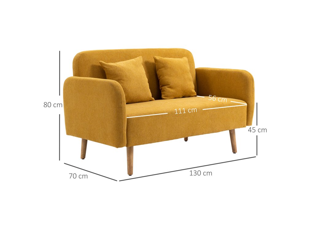 HOMCOM 2místná pohovka, gauč se 2 polštáři, čalouněná pohovka pro dva, čalouněná pohovka se sametovým potahem, područky, křeslo do obývacího pokoje, ložnice, 130 x 70 x 80 cm, žlutá barva