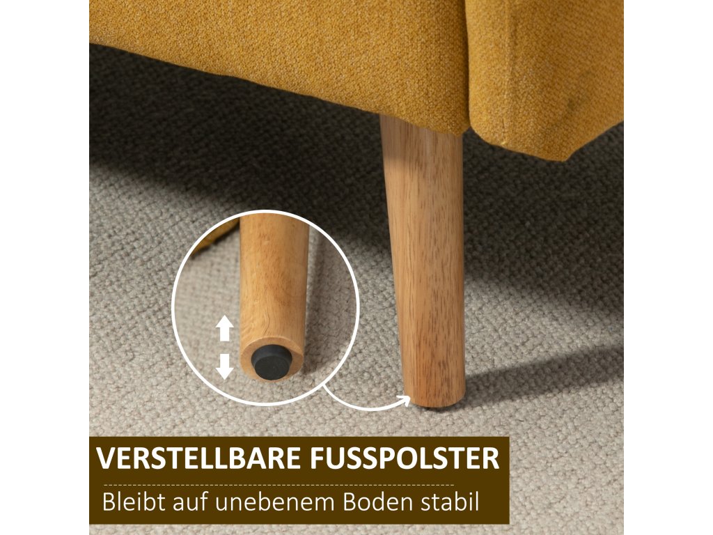 - Nastavitelné podnožky: Nohy z masivního kaučukového dřeva dodávají pohovce pevný stojan. Dodávané nastavitelné podnožky zajišťují, že pohovka stojí vzpřímeně, aniž by se kymácela, a chrání podlahu před poškrábáním