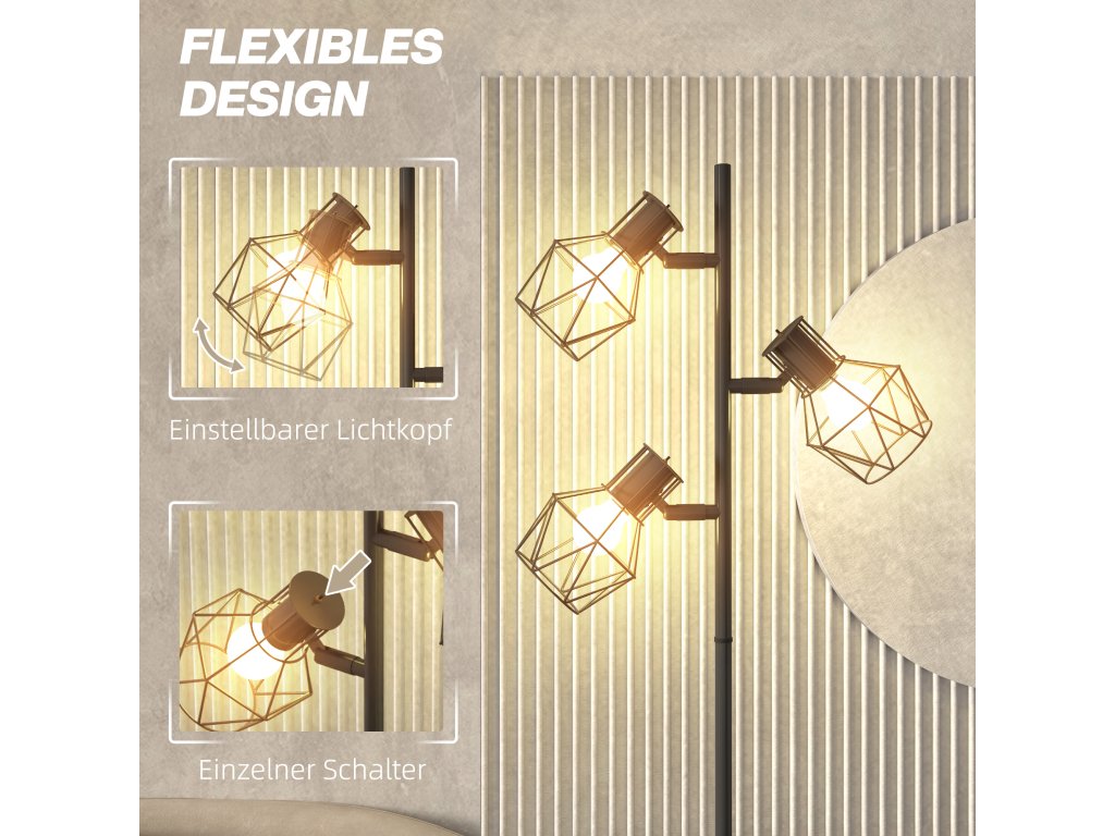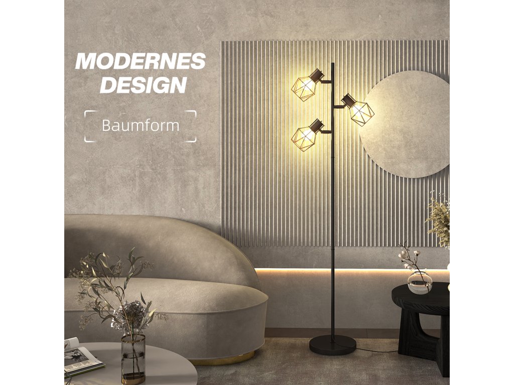 - ✔ Stromový design, tři nastavitelná světla a štíhlý kovový rám stojací lampy dodají vašemu obytnému prostoru moderní nádech