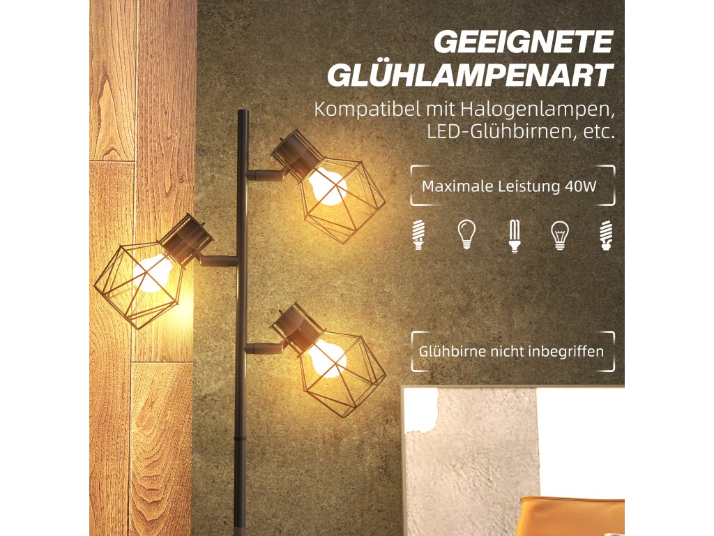 - Široká škála možností: Tato stojací lampa je kompatibilní s různými typy žárovek, včetně LED a halogenových, a podporuje žárovky s paticí E27 až do výkonu 40 W, což poskytuje řadu možností osvětlení