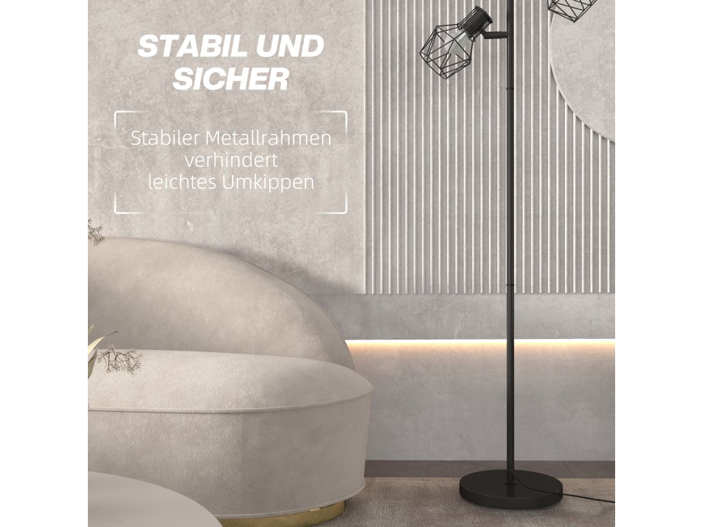 Osvětlete své okolí stylově se stojací lampou HOMCOM LED! Její moderní design se vyznačuje dlouhou centrální tyčí se třemi nastavitelnými světly, která vám umožní nasměrovat světlo přesně tam, kam chcete. Každé světlo lze zapnout samostatně a spočívá na pevné kovové základně pro optimální stabilitu. Ideální pro stylově zařízené místnosti.