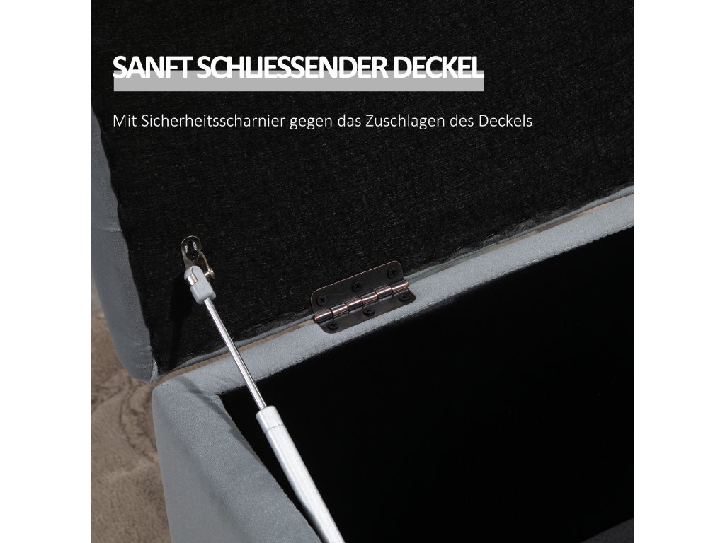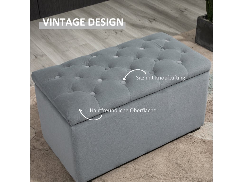 Tato stylová a elegantní úložná lavice od společnosti HOMCOM se skvěle hodí do každého obývacího pokoje, ložnice nebo vstupního prostoru. Díky potahu z měkkého mikrovlákna tato lavice upoutá pozornost. Prostorný interiér umožňuje uložit předměty, jako jsou dálkové ovladače nebo další polštáře a deky, nebo dokonce dvě menší kostky na sezení, které šetří místo.