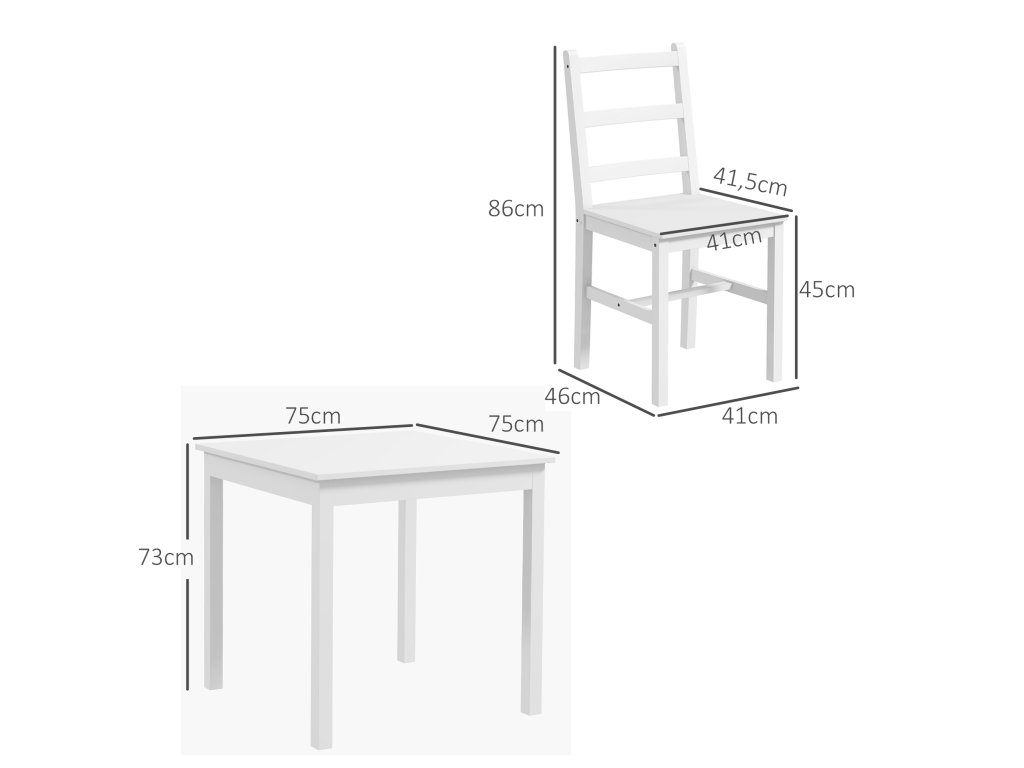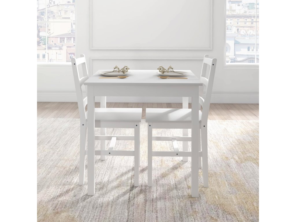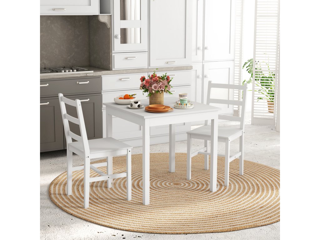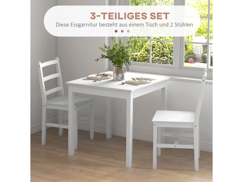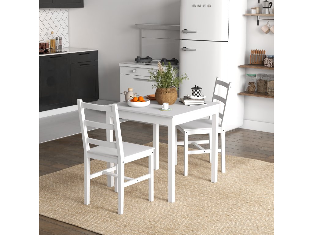 HOMCOM 3dílný jídelní set Stůl se židlemi, masivní dřevo, bílá barva