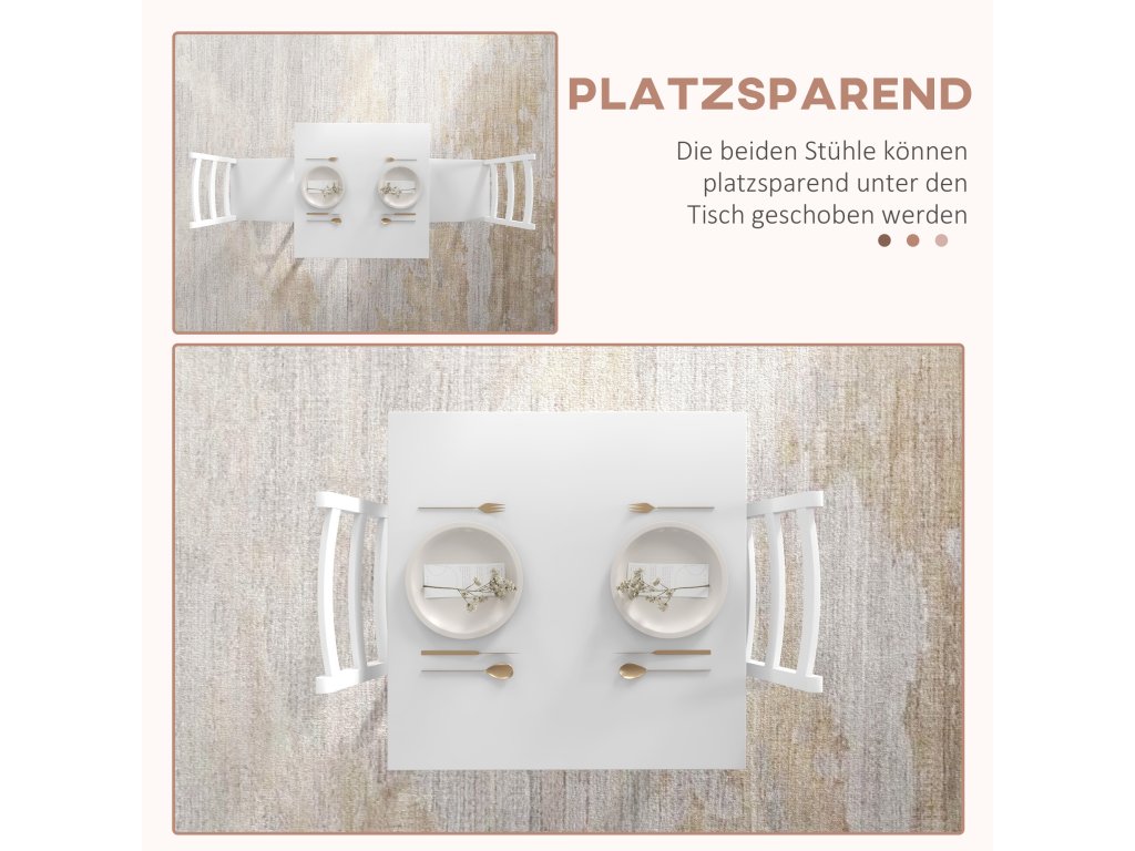 - ✔ Prostorově úsporné uložení 2 židlí pod stolem.