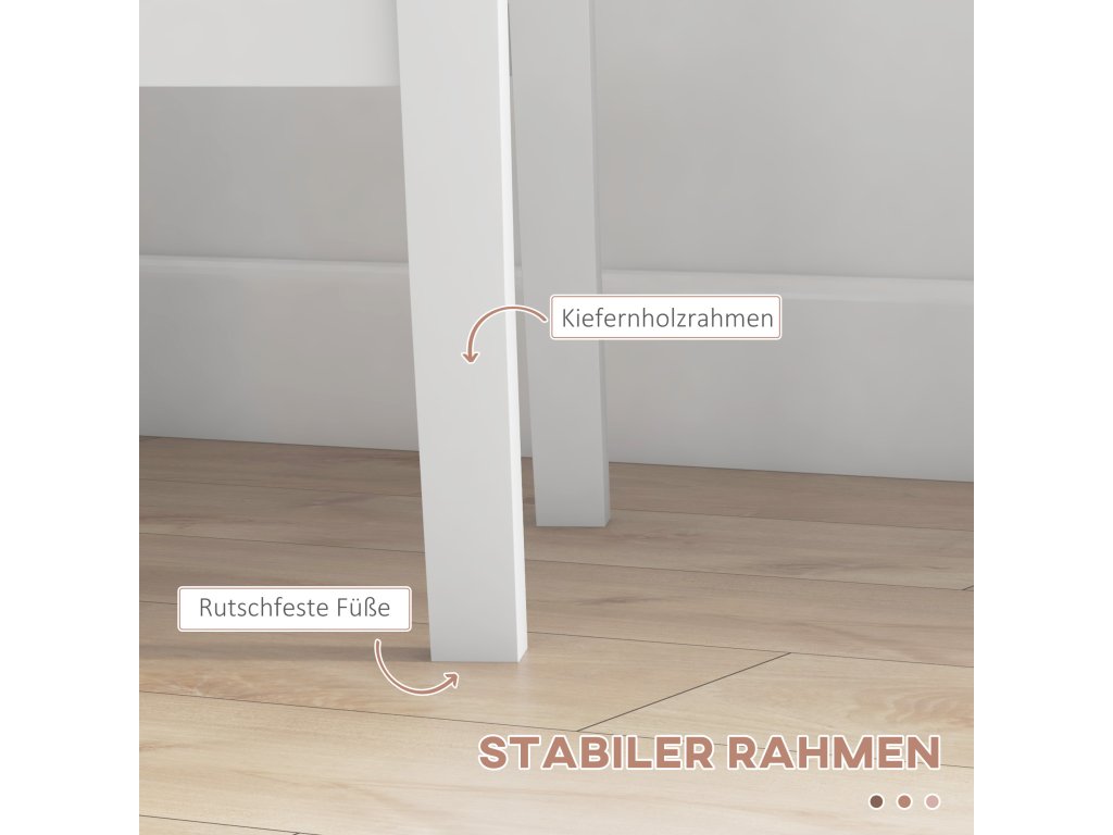 - ✔ Robustní rám z borovicového dřeva, snadno čistitelný lakovaný povrch.