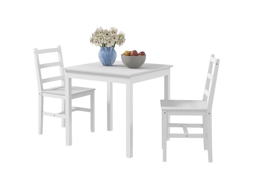 - 3dílná jídelní souprava: Tato jídelní souprava se skládá ze čtvercového jídelního stolu a dvou jídelních židlí. Nabízí prostor pro dvě osoby, které si mohou vychutnat útulnou společnou večeři