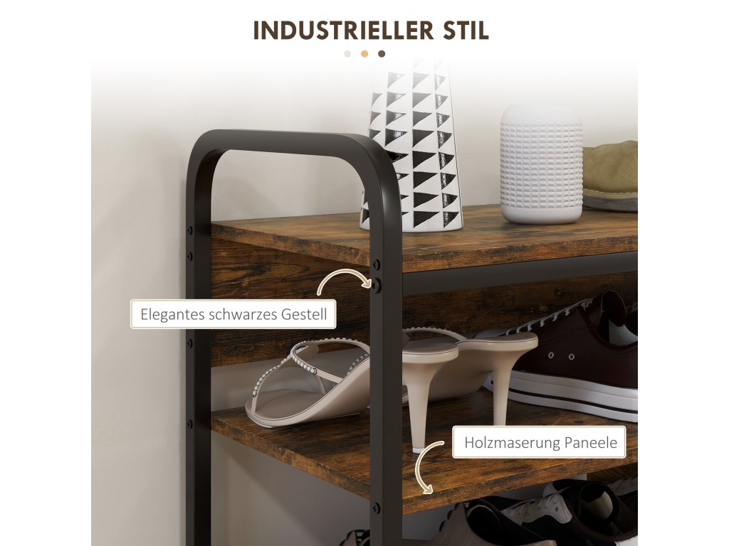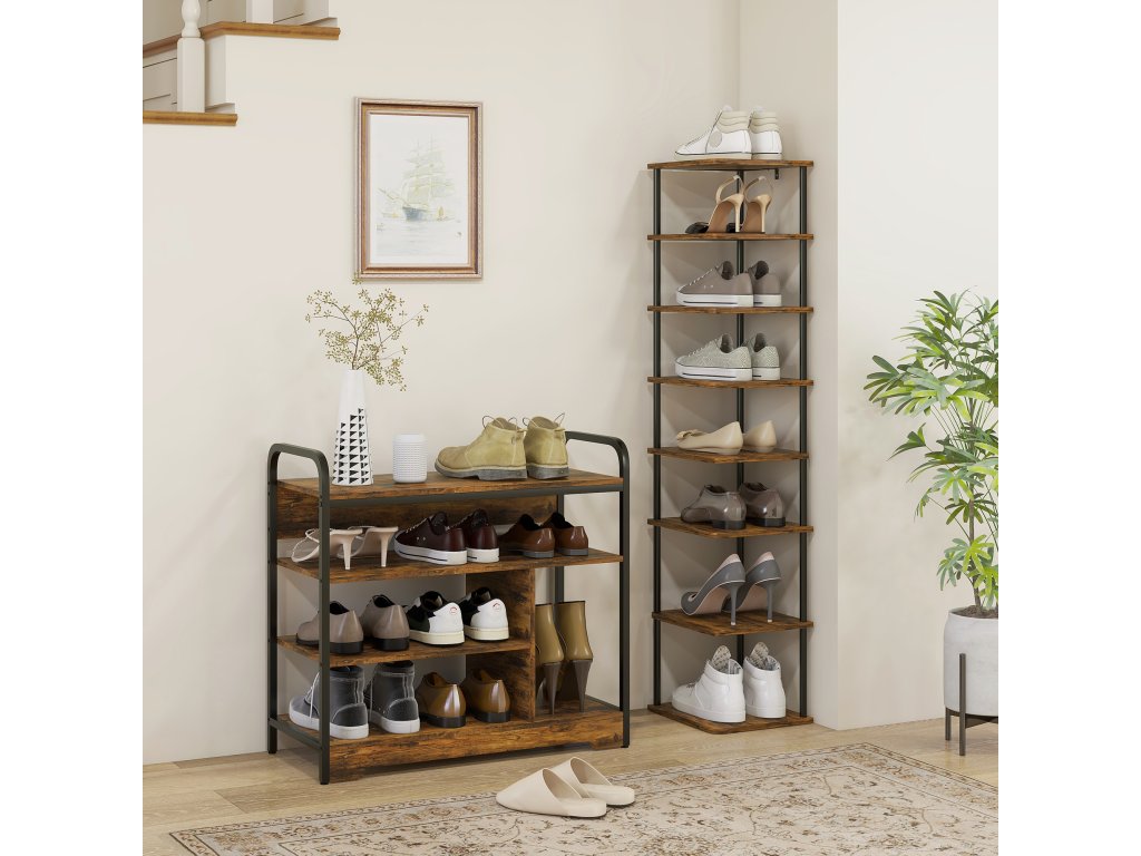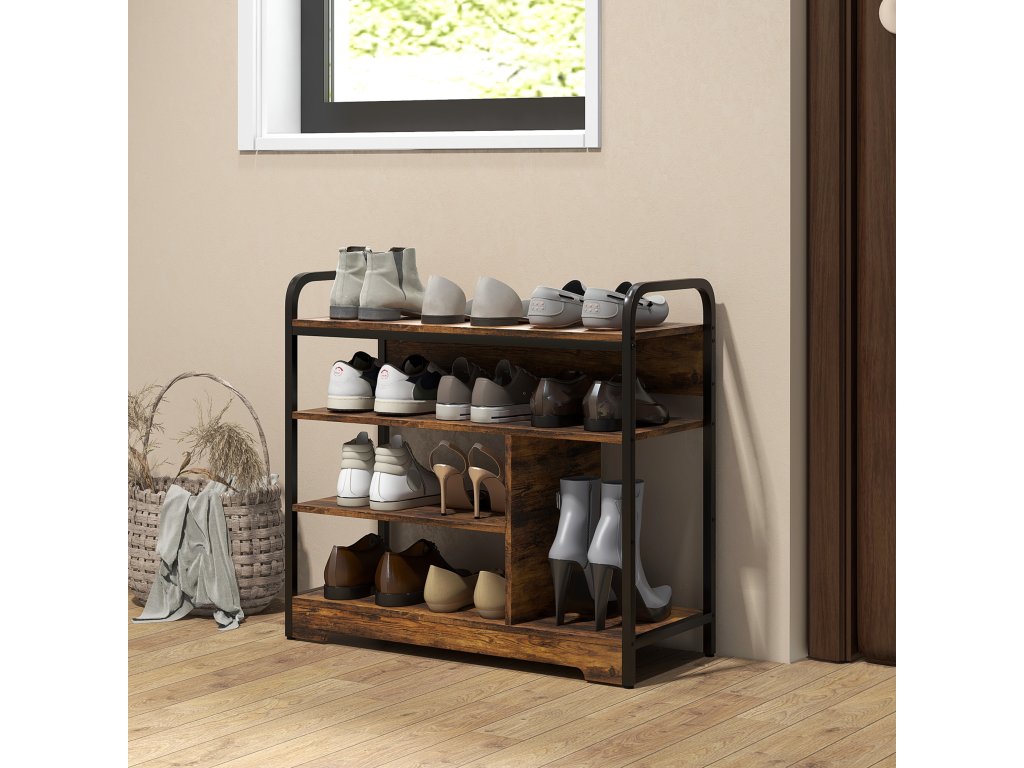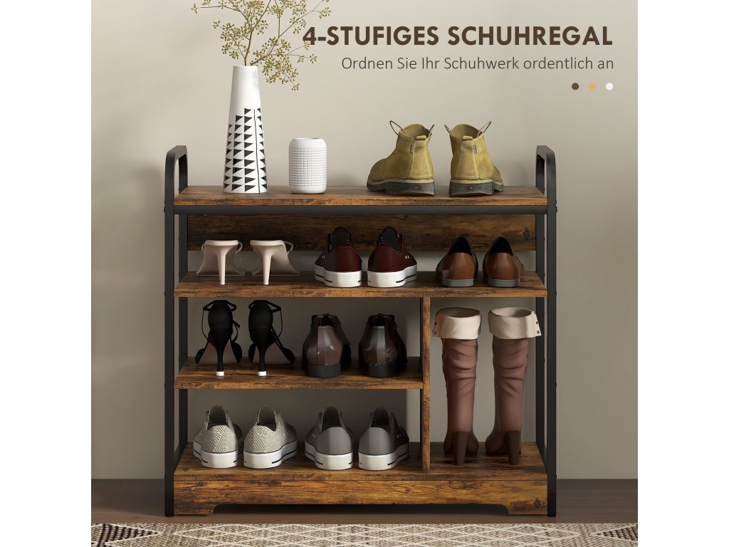 Překáží vám boty vždycky? Pomůže vám čtyřpatrový botník od společnosti HOMCOM. Díky vyšší boční polici, která je ideální pro vysoké podpatky nebo boty, udrží vaše boty v pořádku. Otevřený design umožňuje najít boty na první pohled a udržuje je čisté a svěží. Dejte sbohem chaosu v botách a přivítejte stylovou organizaci s průmyslovým botníkem HOMCOM. Ideální pro uklizenou domácnost!