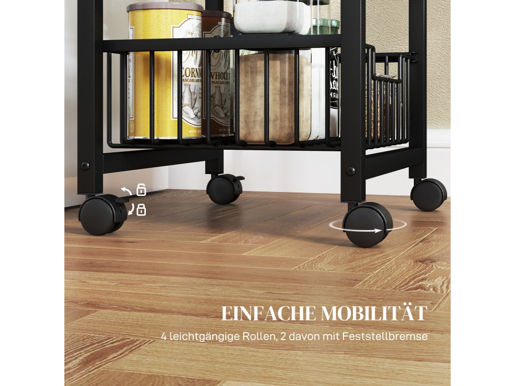- ✔ Madlo kuchyňského vozíku s kolečky zajišťuje pohodlnou mobilitu