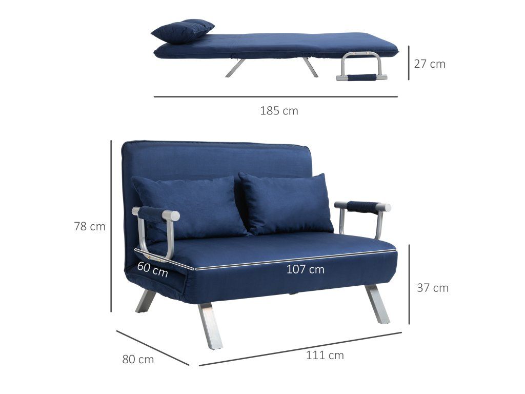 Objevte dokonalý zážitek z pohodlí s dvoumístnou pohovkou HOMCOM s funkcí spaní! Tento všestranný kus nábytku se během chvilky promění z elegantní pohovky v útulnou postel – ideální pro spontánní zdřímnutí nebo pro hosty přes noc. Vysoce kvalitní práškově lakovaný kovový rám pohovky zajišťuje stabilitu, zatímco sametové čalounění a měkké polstrování nabízejí luxusní pohodlí. Odnímatelný látkový potah umožňuje snadné čištění.