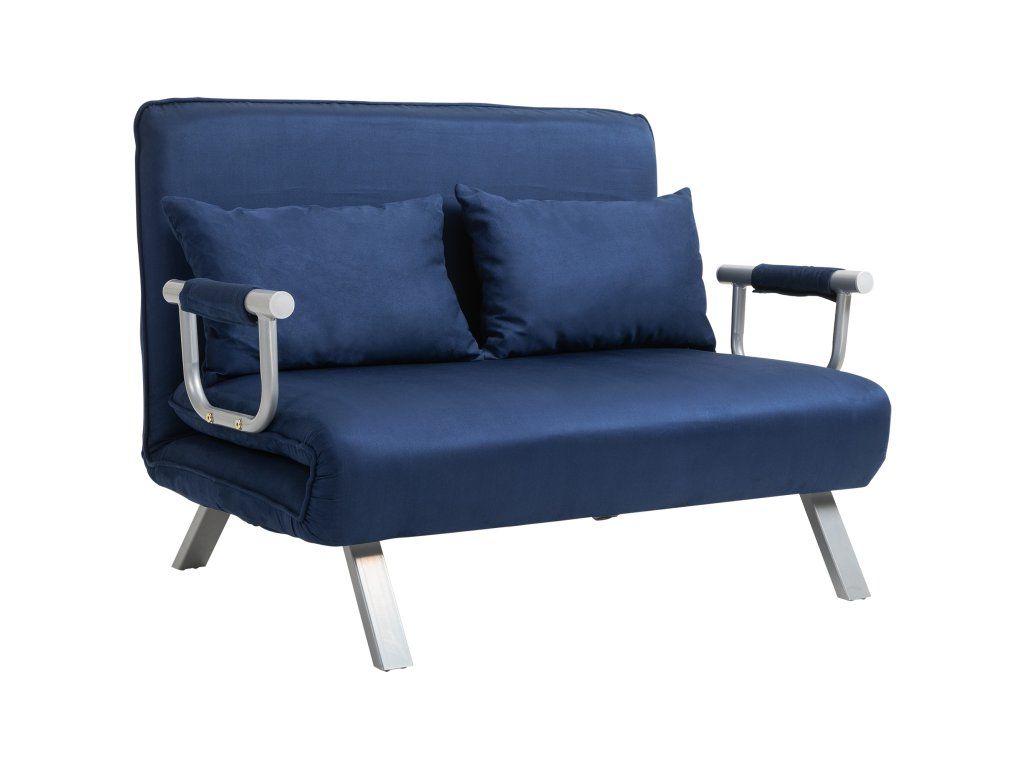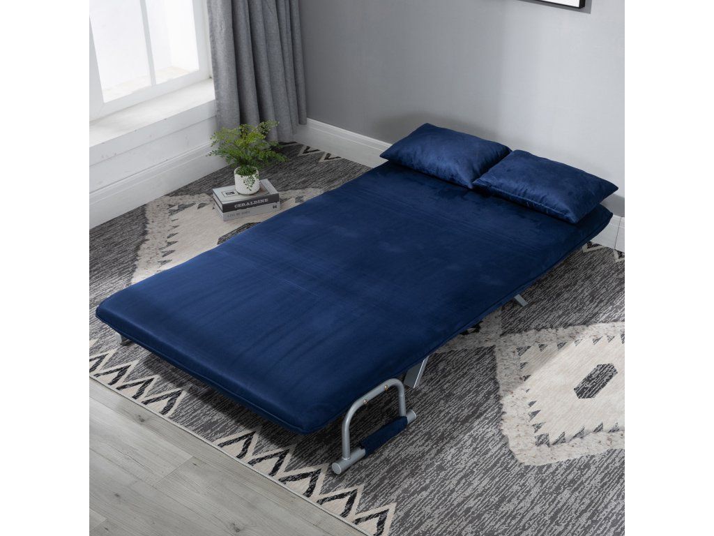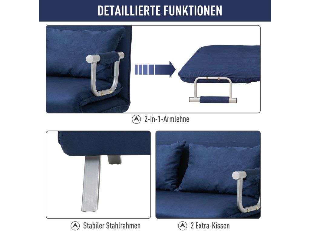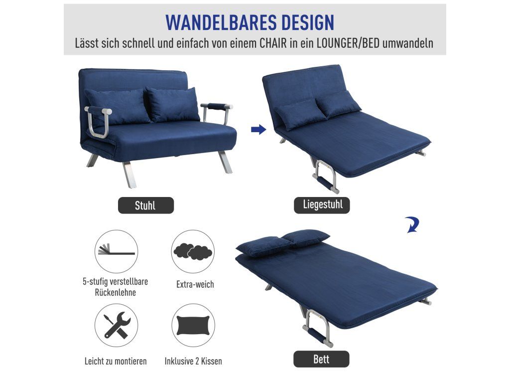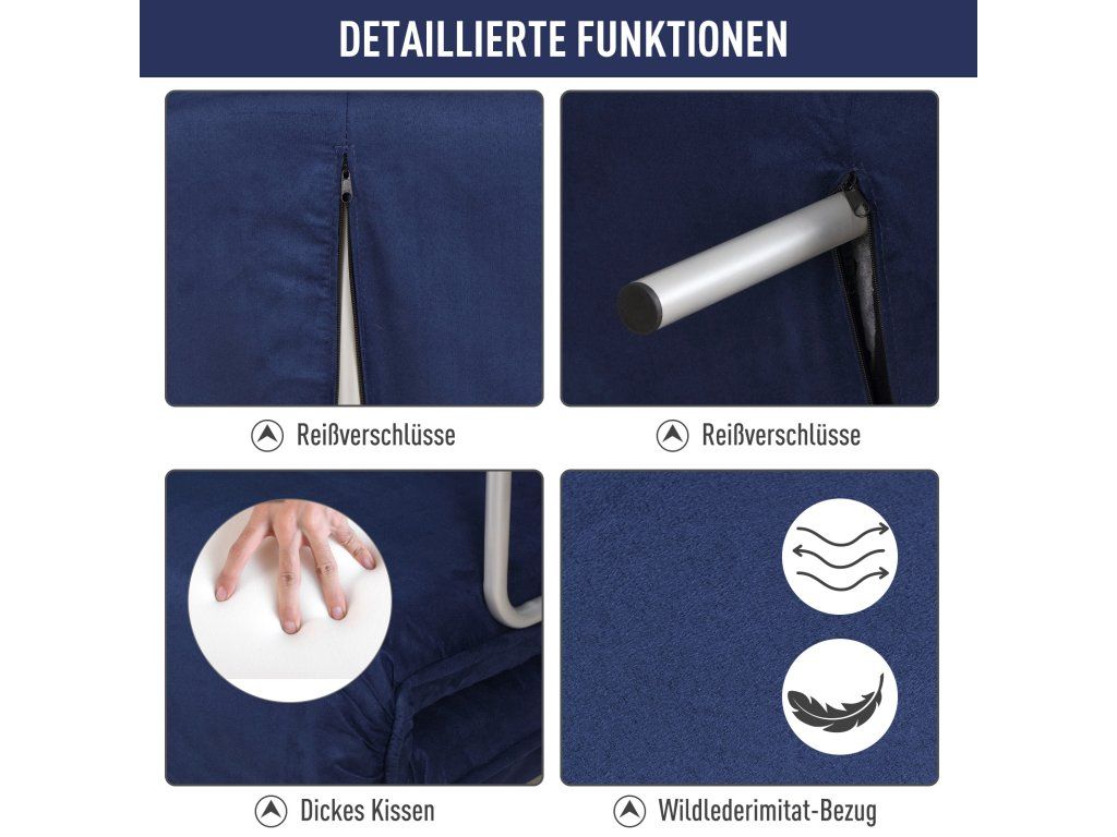 HOMCOM 5cestně nastavitelná rozkládací pohovka z umělé semiše s kovovým rámem a polštáři, tmavě modrá