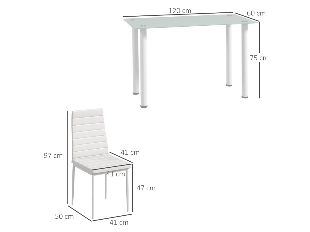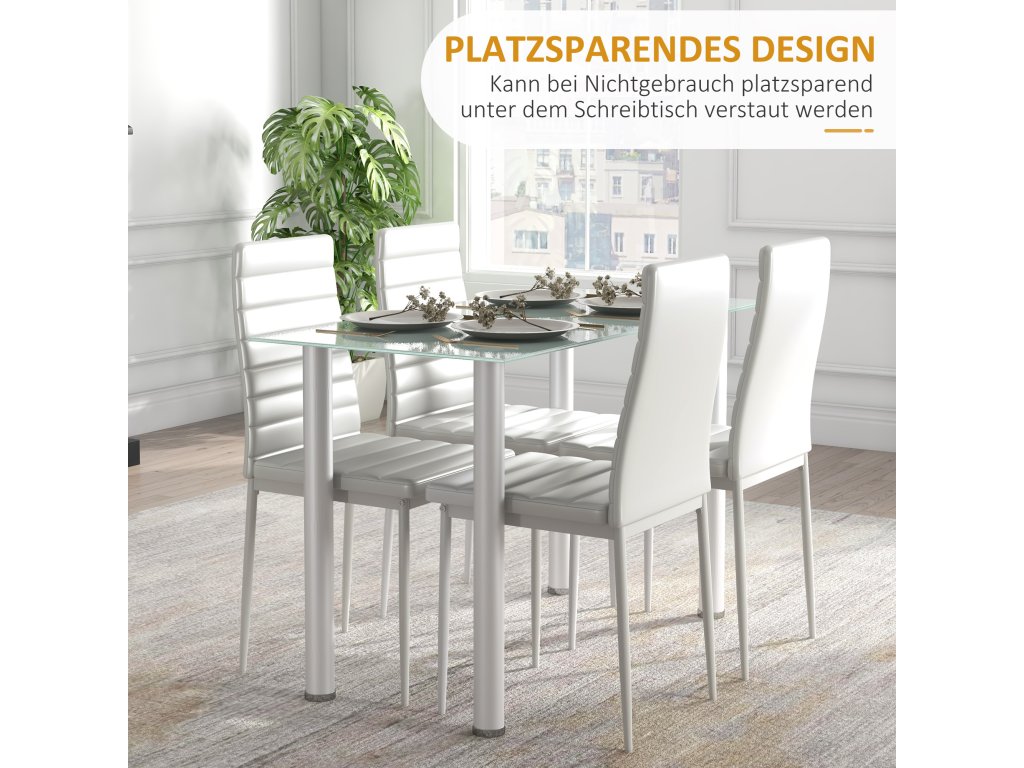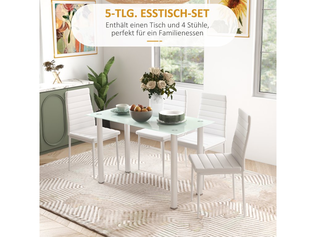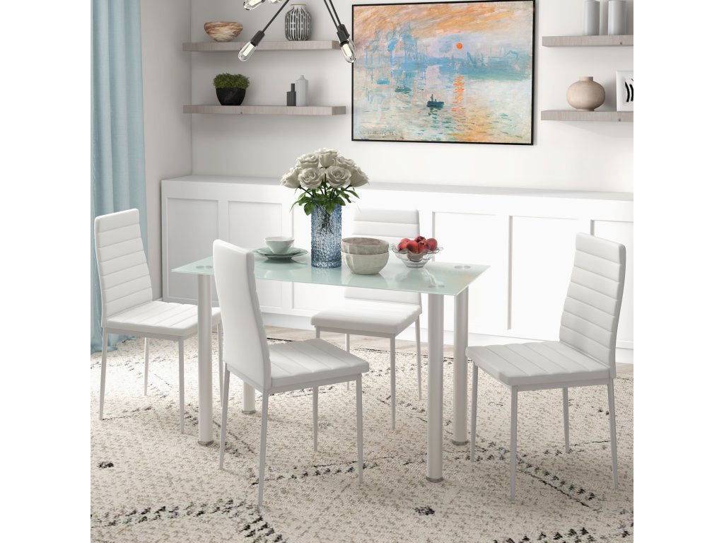HOMCOM 5dílný jídelní set Jídelní stůl se 4 židlemi, moderní design, skleněný stůl, bílá barva