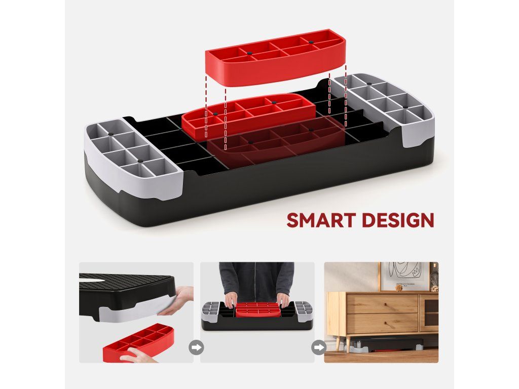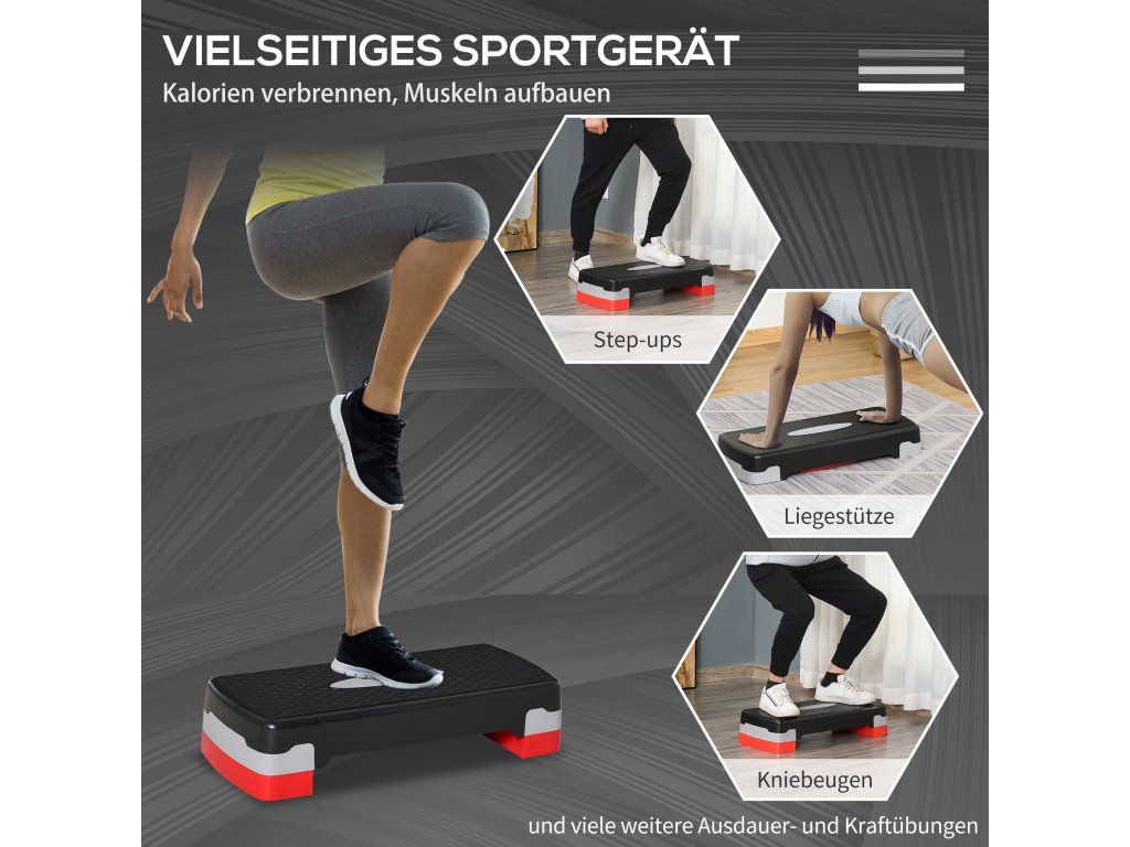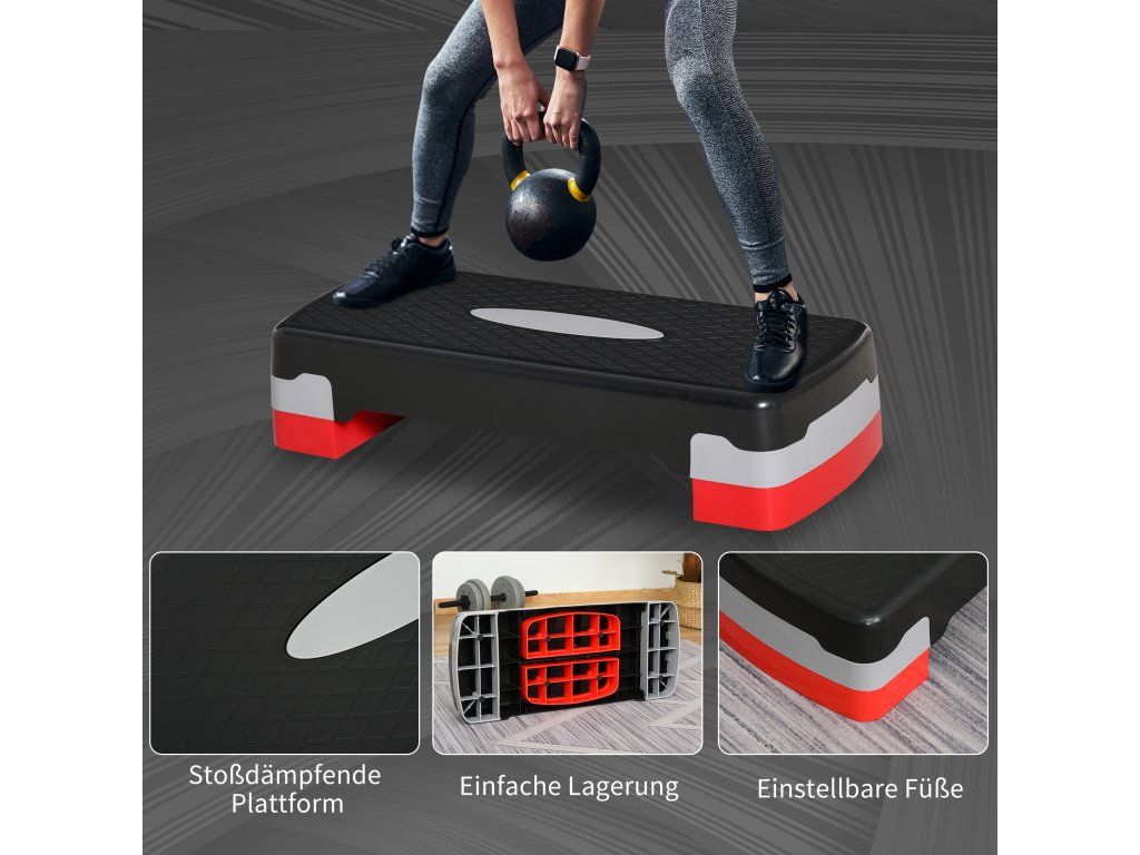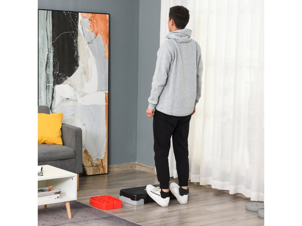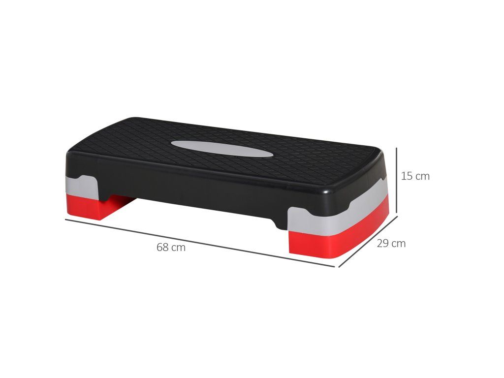 HOMCOM Aerobic stepper 2 kroky výškově nastavitelný 68 x 28 x 15 cm černý+šedý+červený