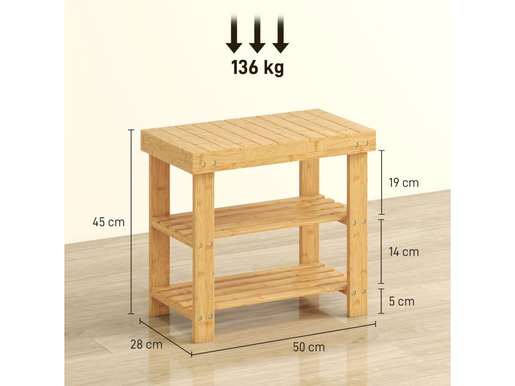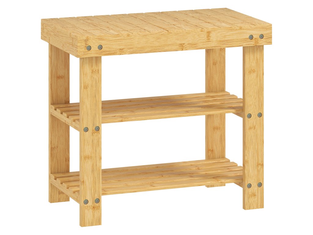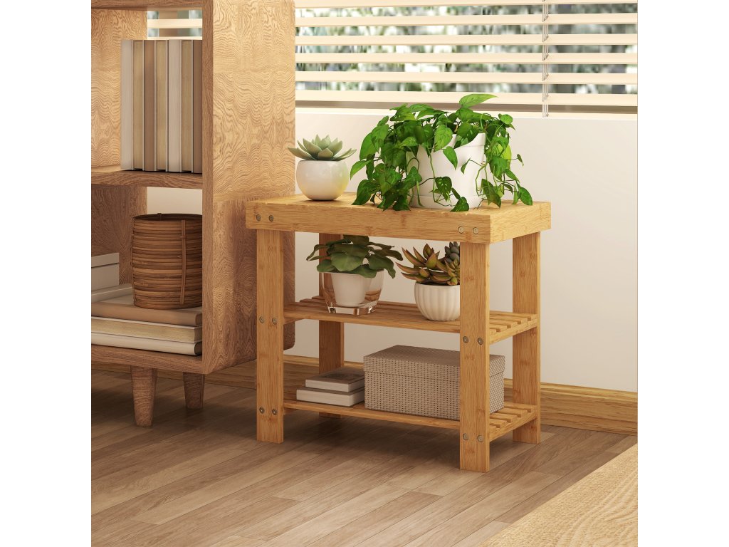HOMCOM Bambusová lavice na boty, botník se 2 policemi, sedák, do předsíně, vstupní prostor, 50x28x45cm, příroda