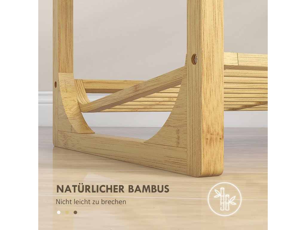 - ✔ Přírodní bambusová struktura botníku zajišťuje stabilitu a robustnost