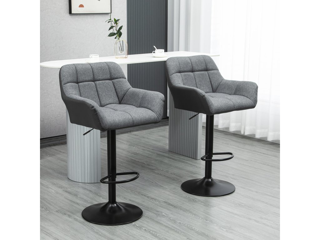 HOMCOM Barová židle sada 2 ks retro design výškově nastavitelná umělá kůže vzhled plátna šedá + černá