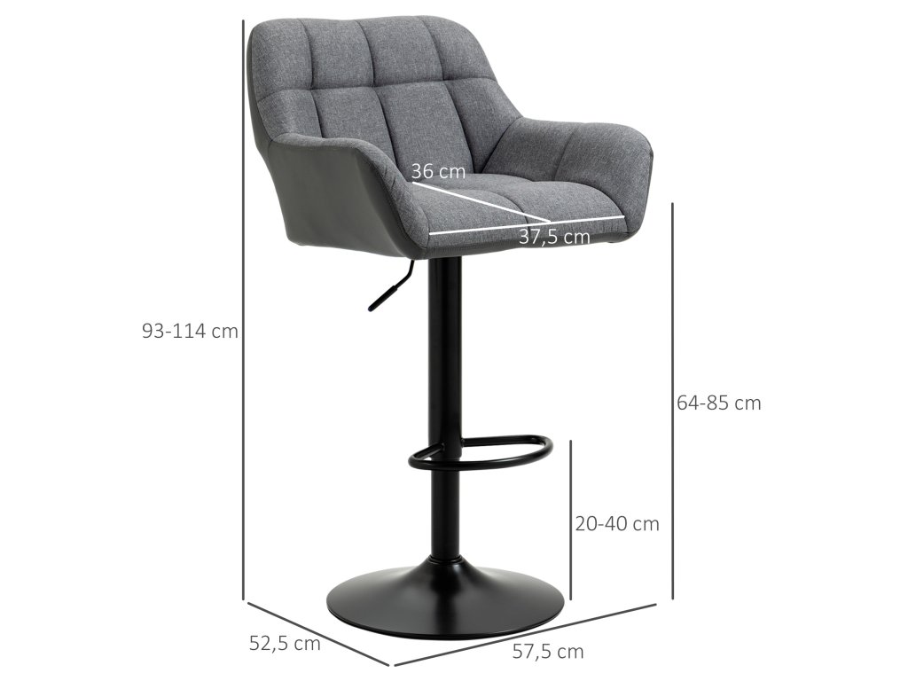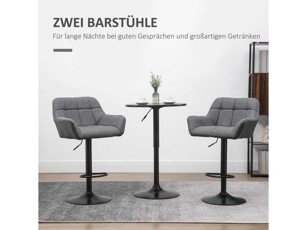 Ať už chcete ráno začít příjemnou snídaní nebo večer zakončit skleničkou, tyto elegantní barové židle od společnosti HOMCOM vám vždy poskytnou pohodlné a stylové posezení. Barové stoličky jsou výškově nastavitelné, takže si můžete výšku přizpůsobit stolu nebo pultu. Ergonomicky tvarované opěradlo, čalouněný sedák a podnožka nabízejí pohodlné sezení a vybízejí k posezení a posezení.
