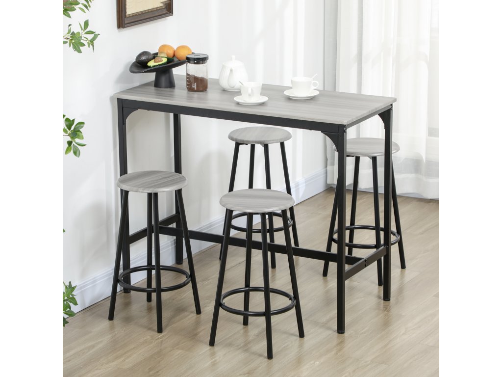 HOMCOM Barový set, 5dílný, stůl a 4 stoličky, průmyslový design, kompaktní, rustikální provedení