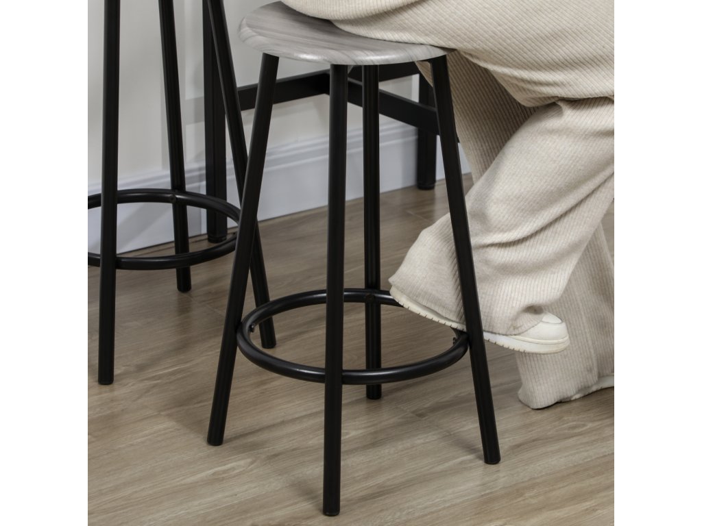 - Průmyslový design: Tento barový stůl s barovými židlemi se dodává v průmyslovém designu, který se dobře hodí do moderních kuchyní, barových prostor, obývacích pokojů a mnoha dalších místností. Design v kombinaci dřevěného vzhledu a černého kovu se dobře kombinuje s různými styly interiérů.