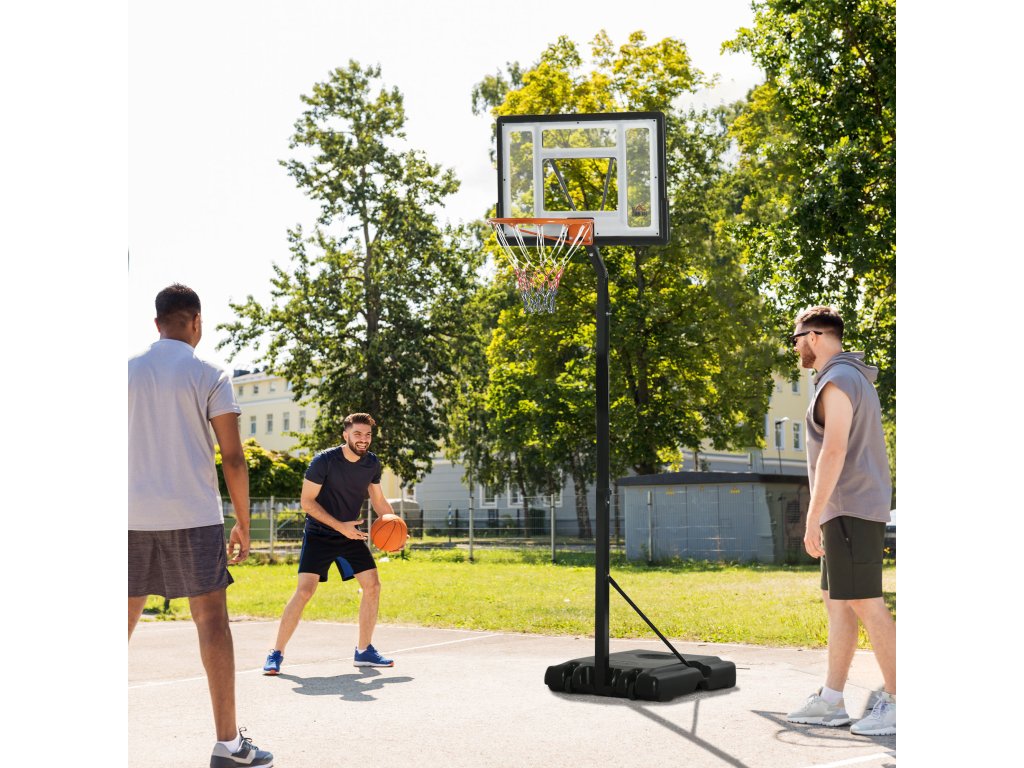 - STABILNÍ PODSTAVEC: Plastový podstavec lze snadno naplnit pískem nebo vodou, takže pevně stojí na zemi. Hmotnost základny je 40 kg při naplnění vodou, 45 kg s pískem nebo 50 kg při naplnění pískem a vodou. Kulaté praktické vybrání na základně poskytuje prostor pro umístění basketbalového míče a zabraňuje jeho kutálení.