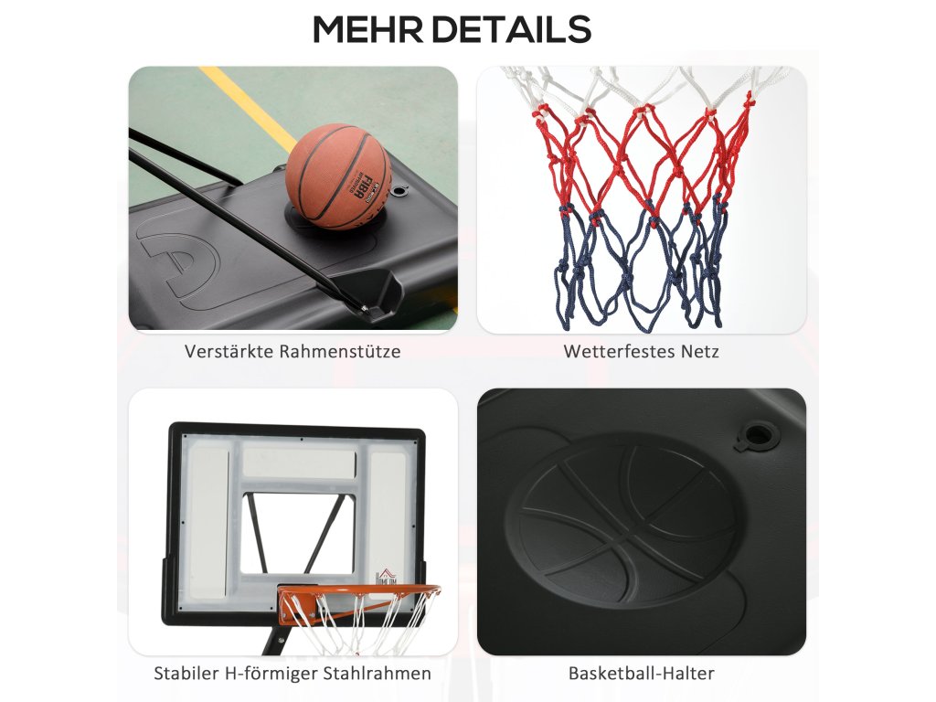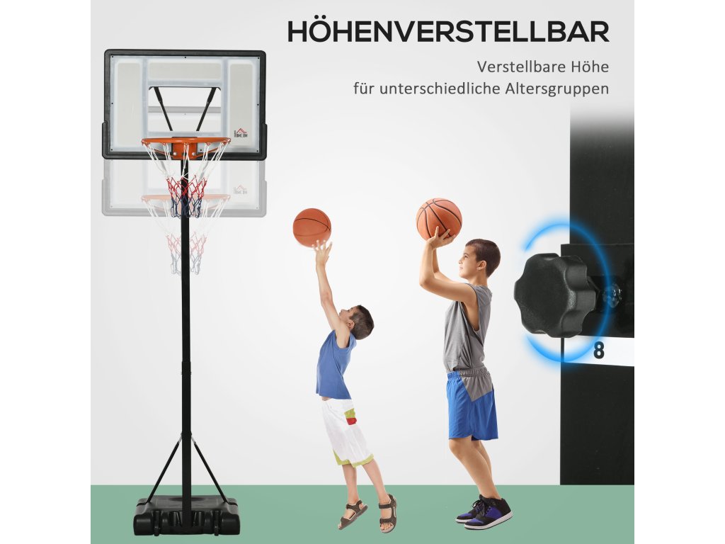 HOMCOM Basketbalový stojan s kolečky pojízdný 210-260 cm výškově nastavitelný basketbalový koš se stojanem vhodný pro venkovní i vnitřní použití ocel plast černý