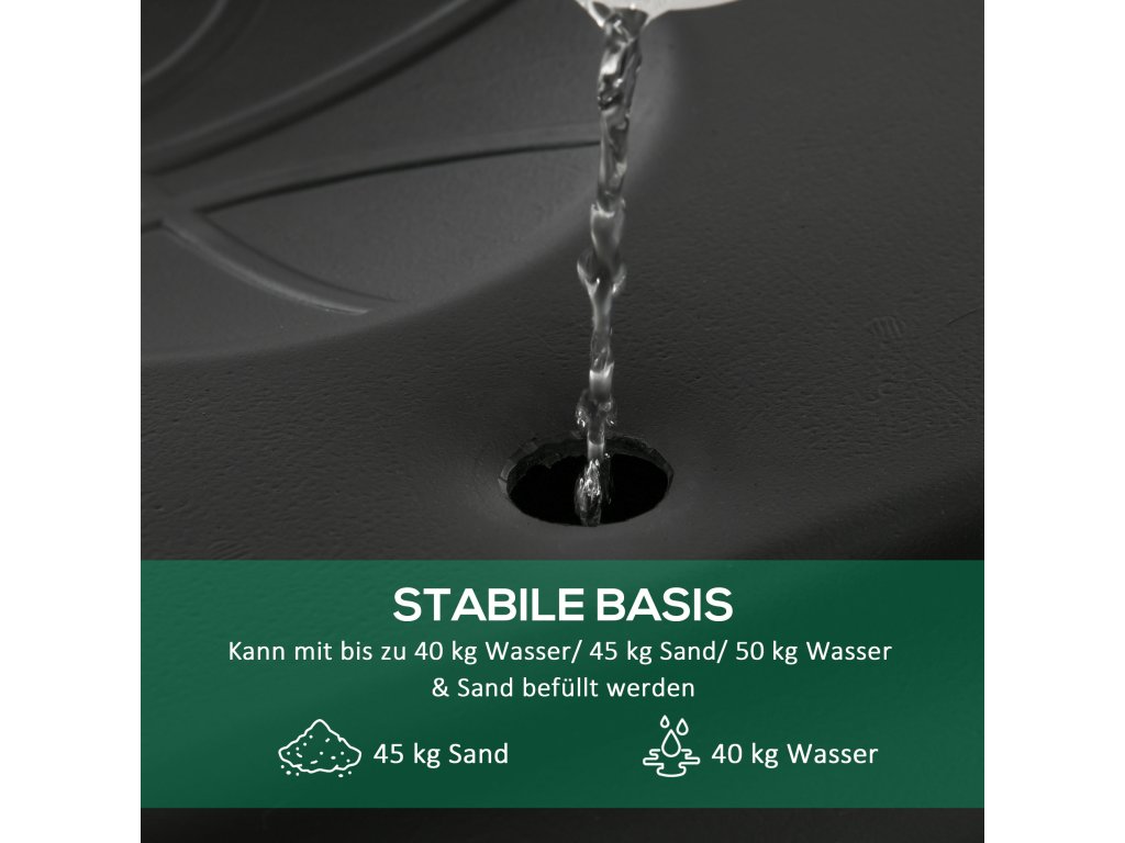 - ✔ Nosnost základny: 40 kg vody, 45 kg písku nebo maximálně 50 kg vody a písku