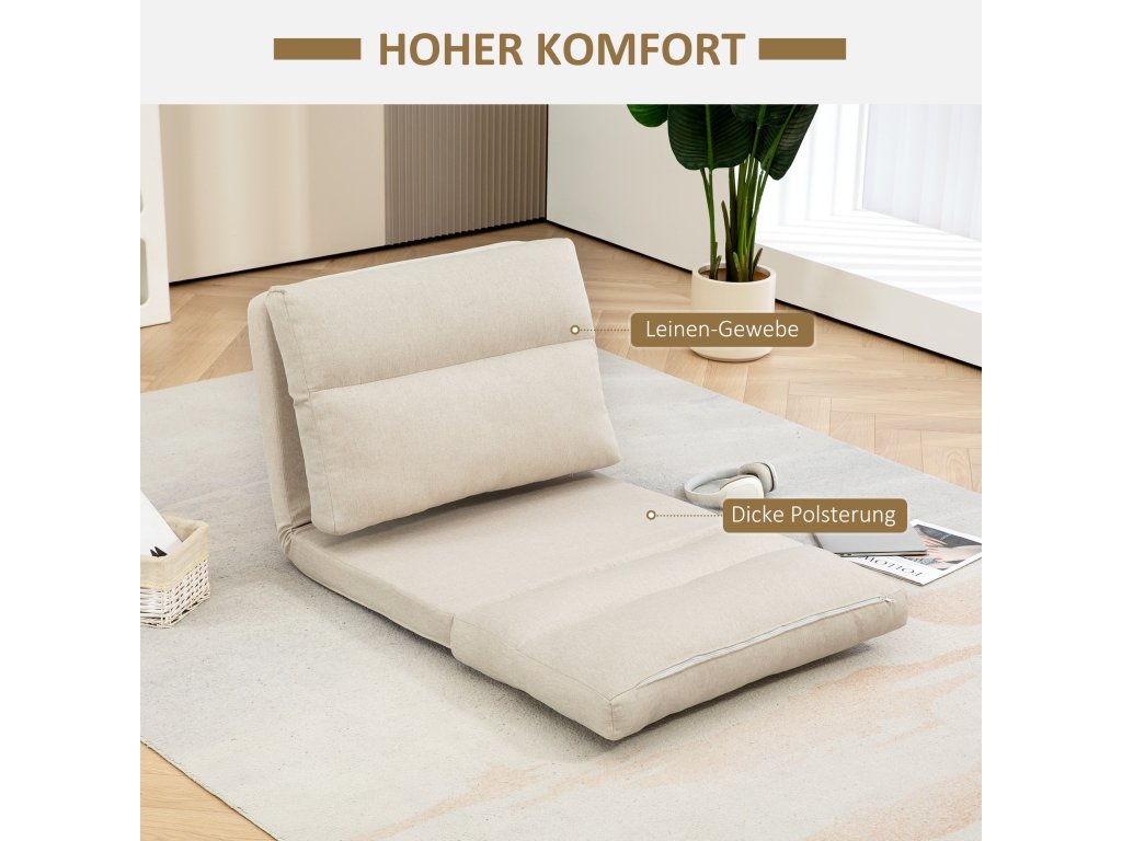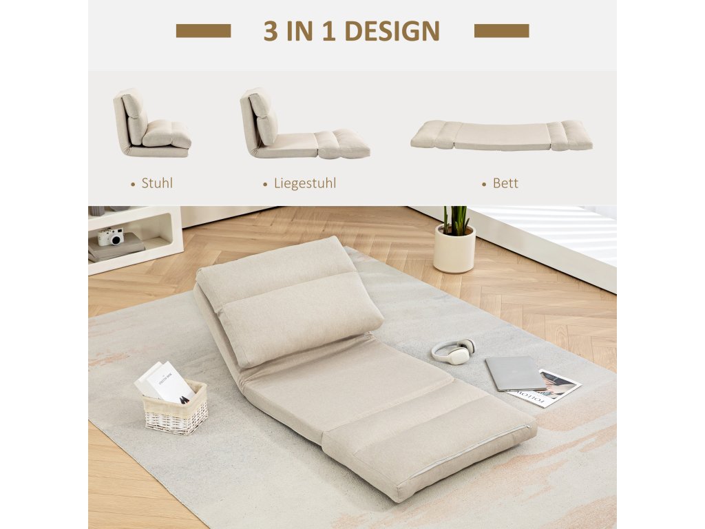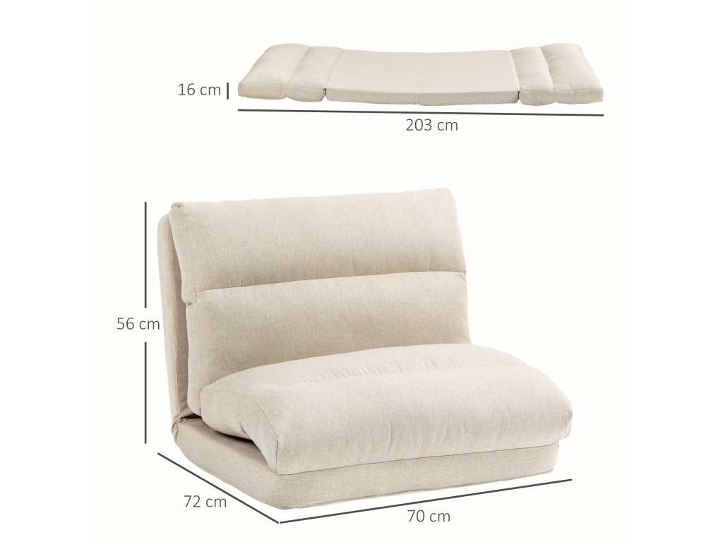 HOMCOM Beanbag s funkcí lůžka, polohovatelné opěradlo, skládací, do 120 kg, 70 x 72 x 56 cm, béžová barva