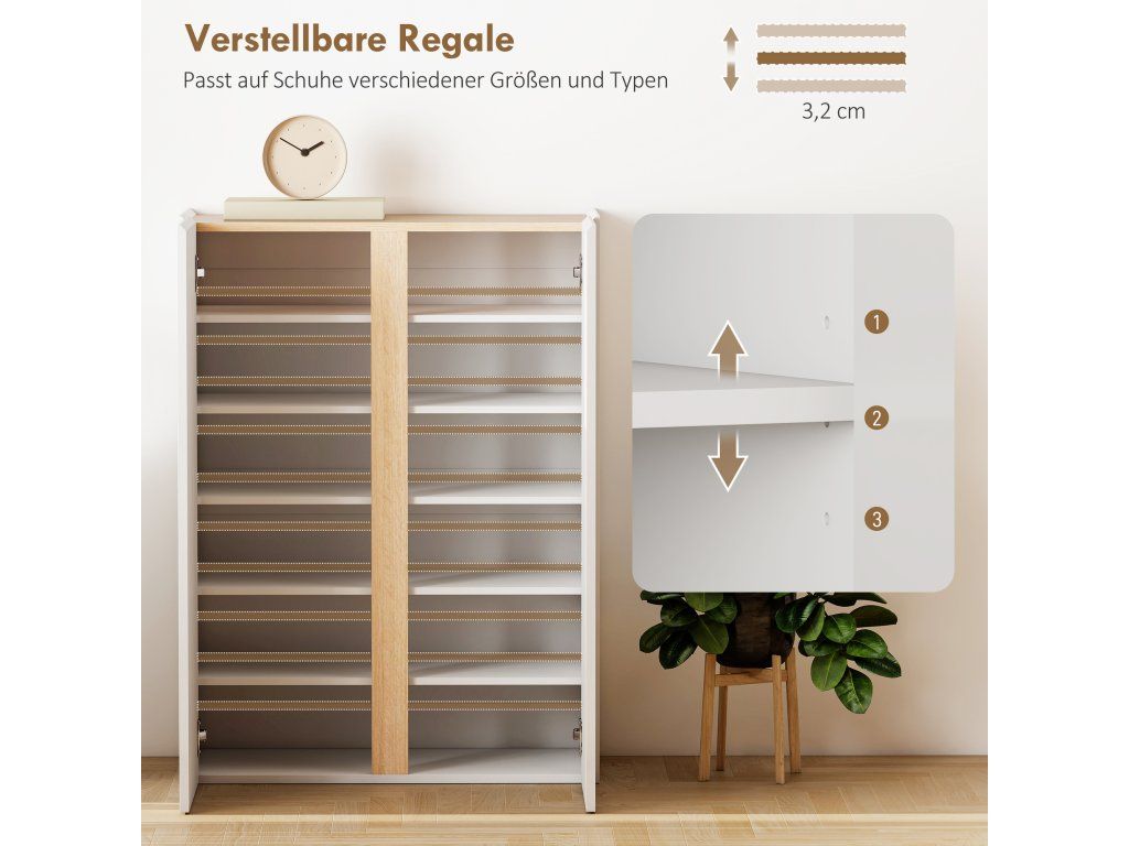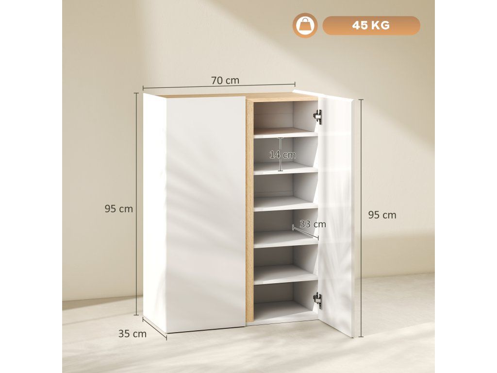 Vadí vám boty povalující se u vchodu? Skříňka na boty HOMCOM se šesti úrovněmi uspořádá až 18 párů bot. Její jednoduchý design s bílým vysoce lesklým čelem a dřevěnými akcenty se skvěle začlení do moderních interiérů. Dveře skříně na boty s tichým dovíráním navíc ztiší prostor - ideální pro rodiny s dětmi nebo starší osoby.