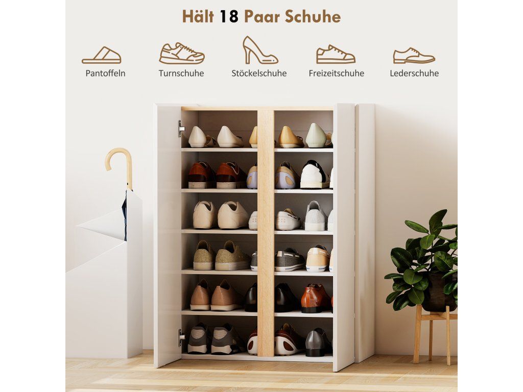 HOMCOM Botník s funkcí tichého zavírání, 6patrové provedení bez úchytek, pojme až 18 párů, do předsíně, vstupní prostor, dřevo, bílá barva
