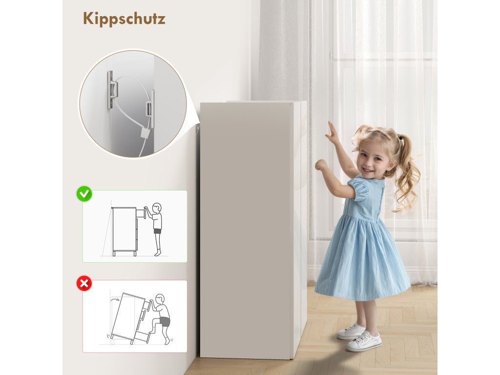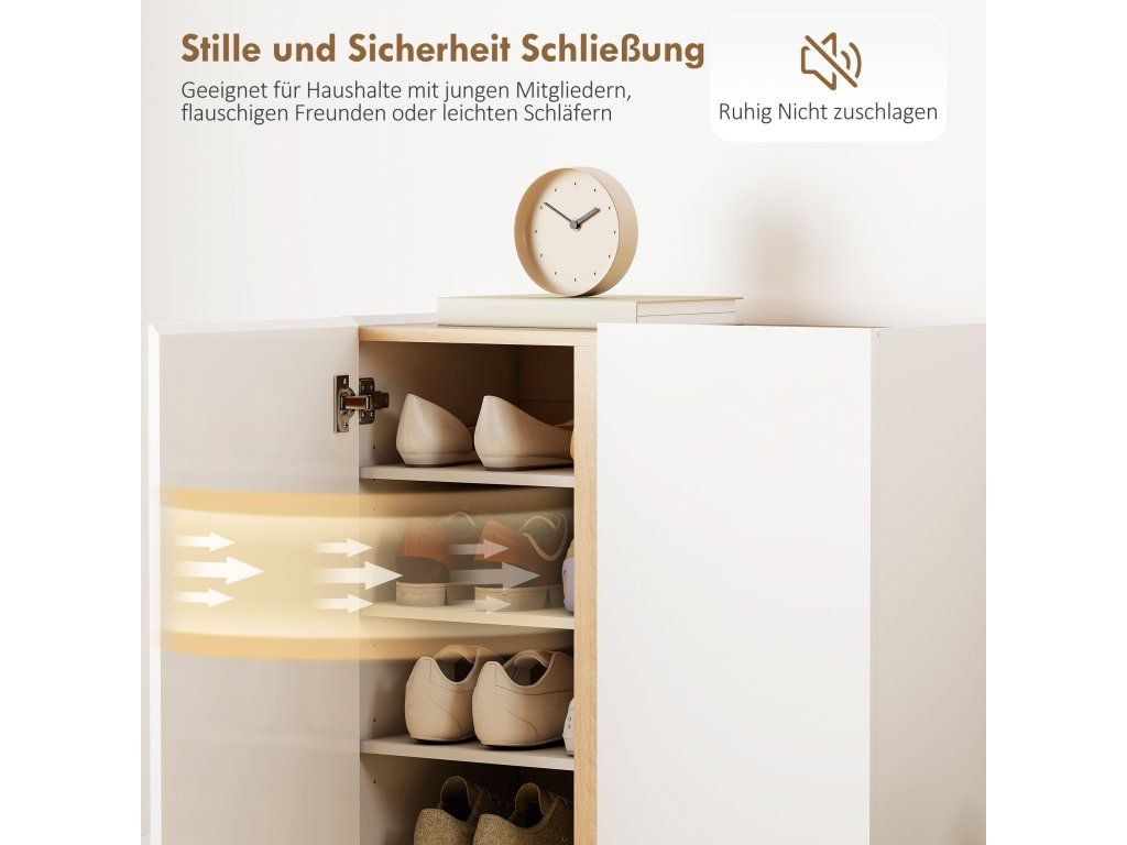 - Tiché bezpečnostní zavírání: Dveře komody na boty se zavírají jemně a tiše, čímž se minimalizuje riziko hlasitých zvuků a komoda je vhodná zejména pro domácnosti s malými dětmi, domácími zvířaty nebo lidmi, kteří mají lehký spánek