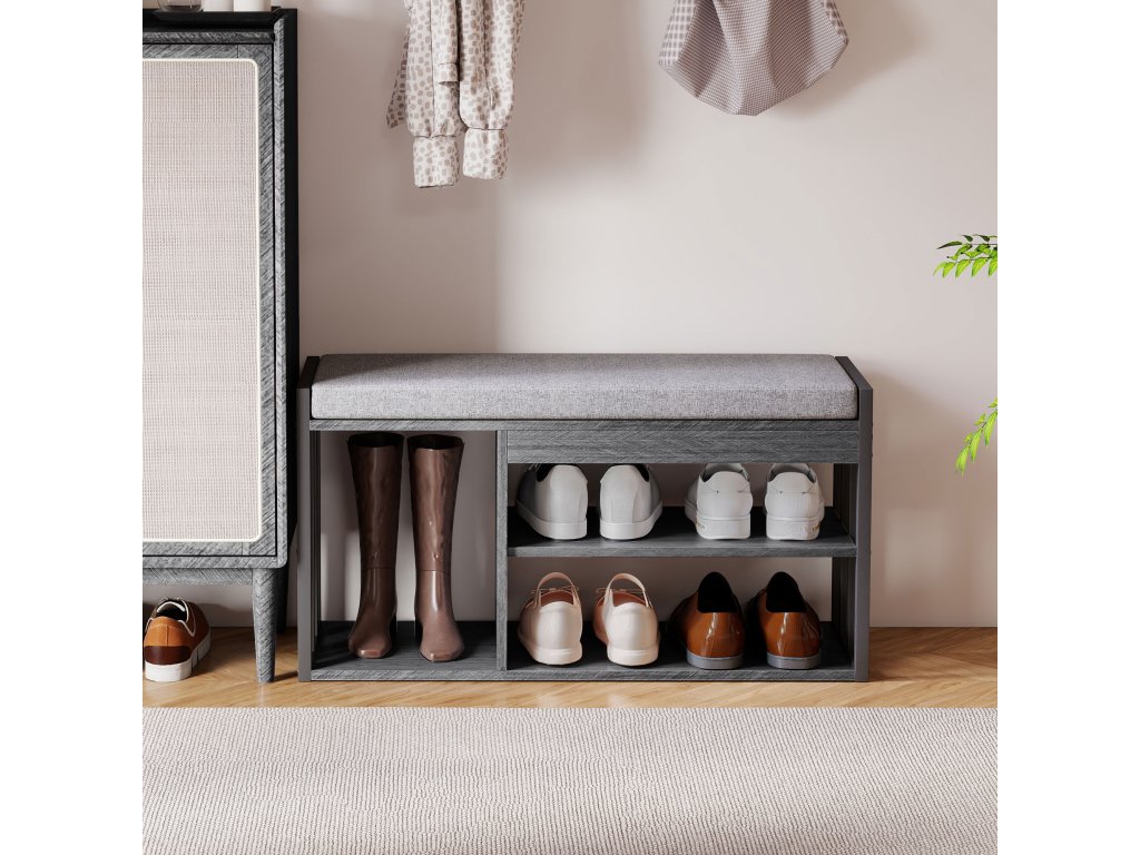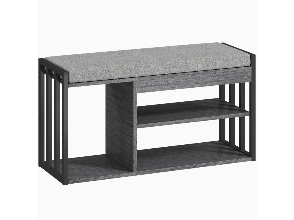 HOMCOM Botník s lavicí, předsíňový botník, třípatrový botník, do předsíně, vstupní haly, obývacího pokoje, ložnice, šedý