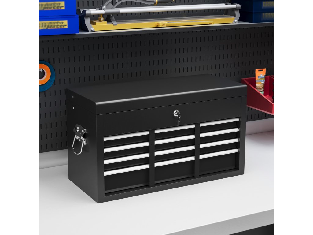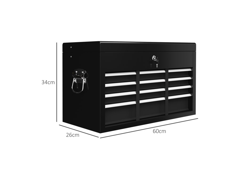 HOMCOM Box na nářadí, uzamykatelný, 3 zásuvky, ocelový kryt, 60x26x34cm, černý