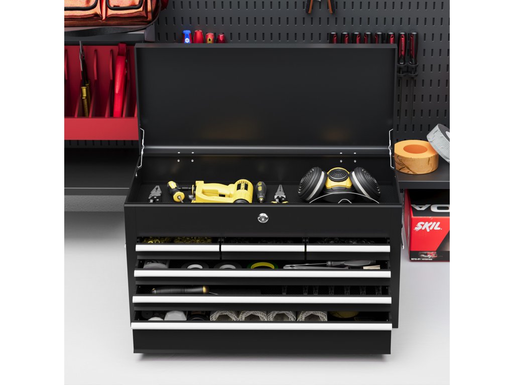 - ✔ Šest zásuvek a horní přihrádka zajišťují efektivní uspořádání vašeho nářadí