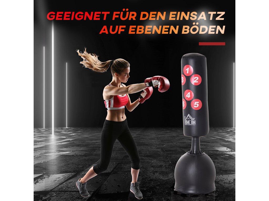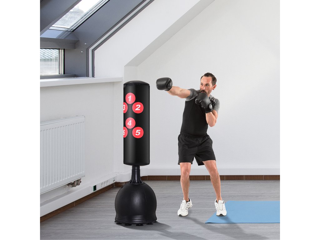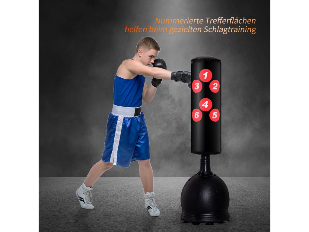 - Vysoce kvalitní stojící boxovací pytel: Volně stojící a ideální partner pro domácí trénink boxu a kopů. Údery a kopy můžete trénovat cíleně.
