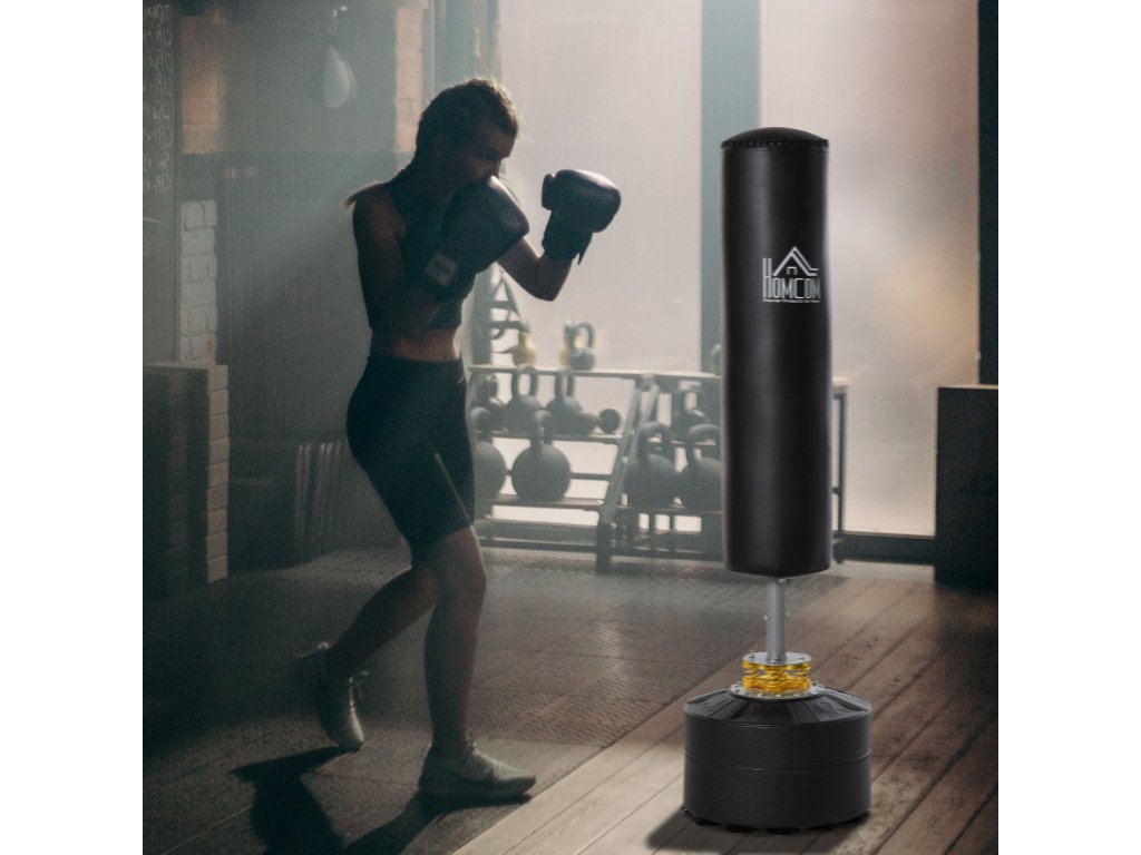HOMCOM Boxovací pytel volně stojící 170cm boxovací pytel s přísavkou Kickboxovací pytel těžký boxovací trenažér pro dospělé teenagery Fitness boxovací pytel pro silový trénink Boxerský trénink MMA trénink