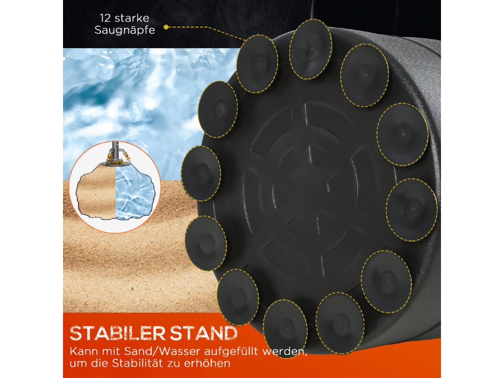 - ✔ Robustní základnu lze naplnit vodou nebo pískem pro zvýšení stability