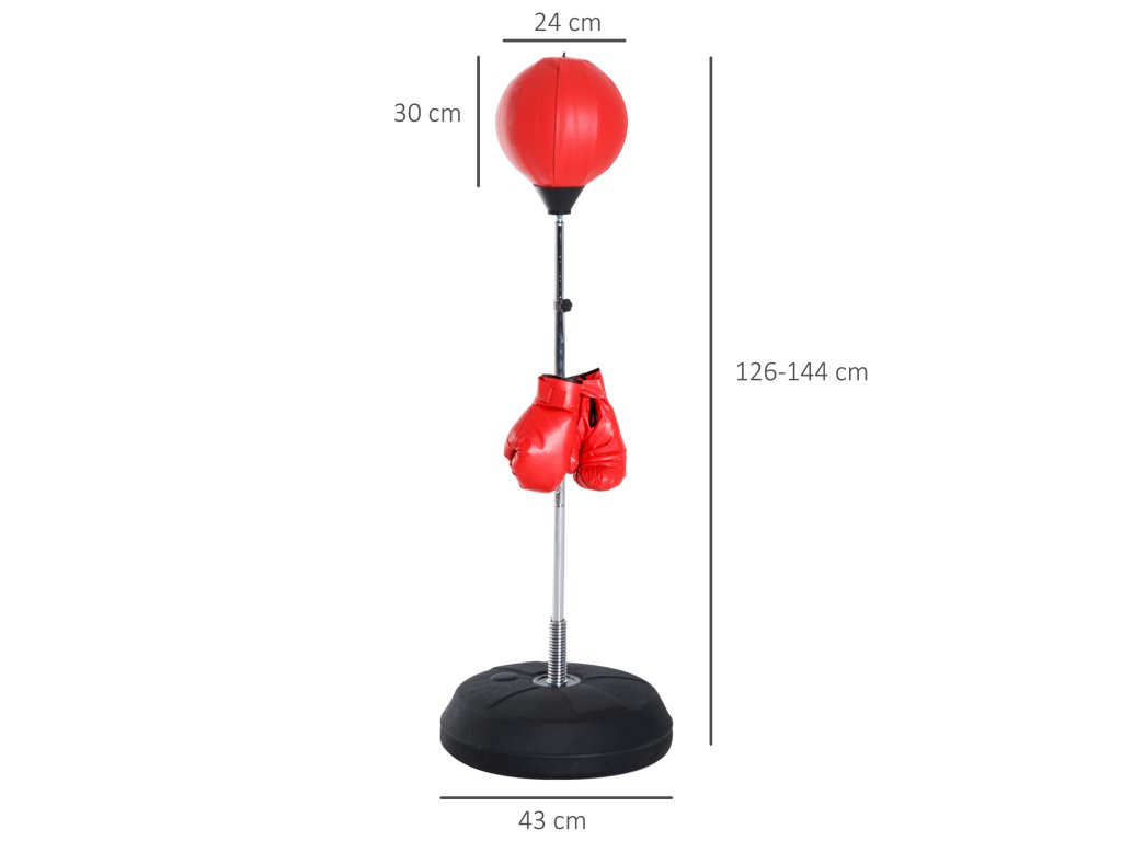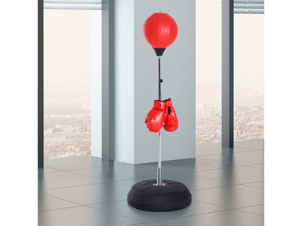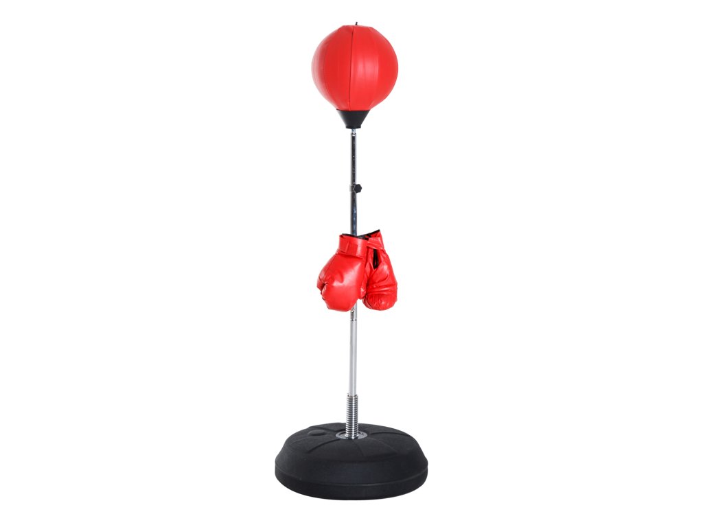 HOMCOM Boxovací set s boxovacím míčem, výškově nastavitelný, včetně boxerských rukavic, 126-144 cm, červený