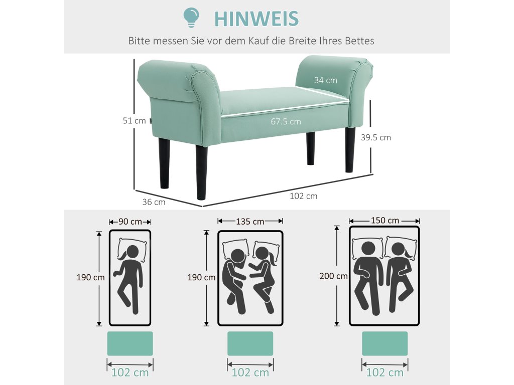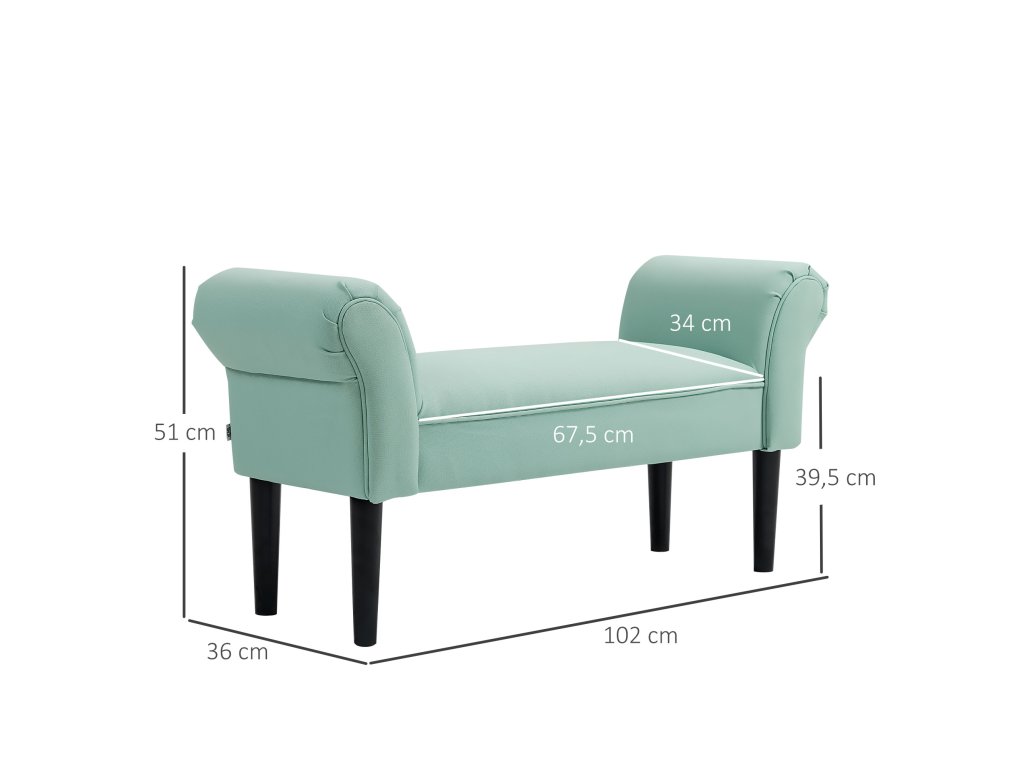 HOMCOM Čalouněná lavice do ložnice a předsíně, max. nosnost 130 kg, 102 x 36 x 51 cm, zelená